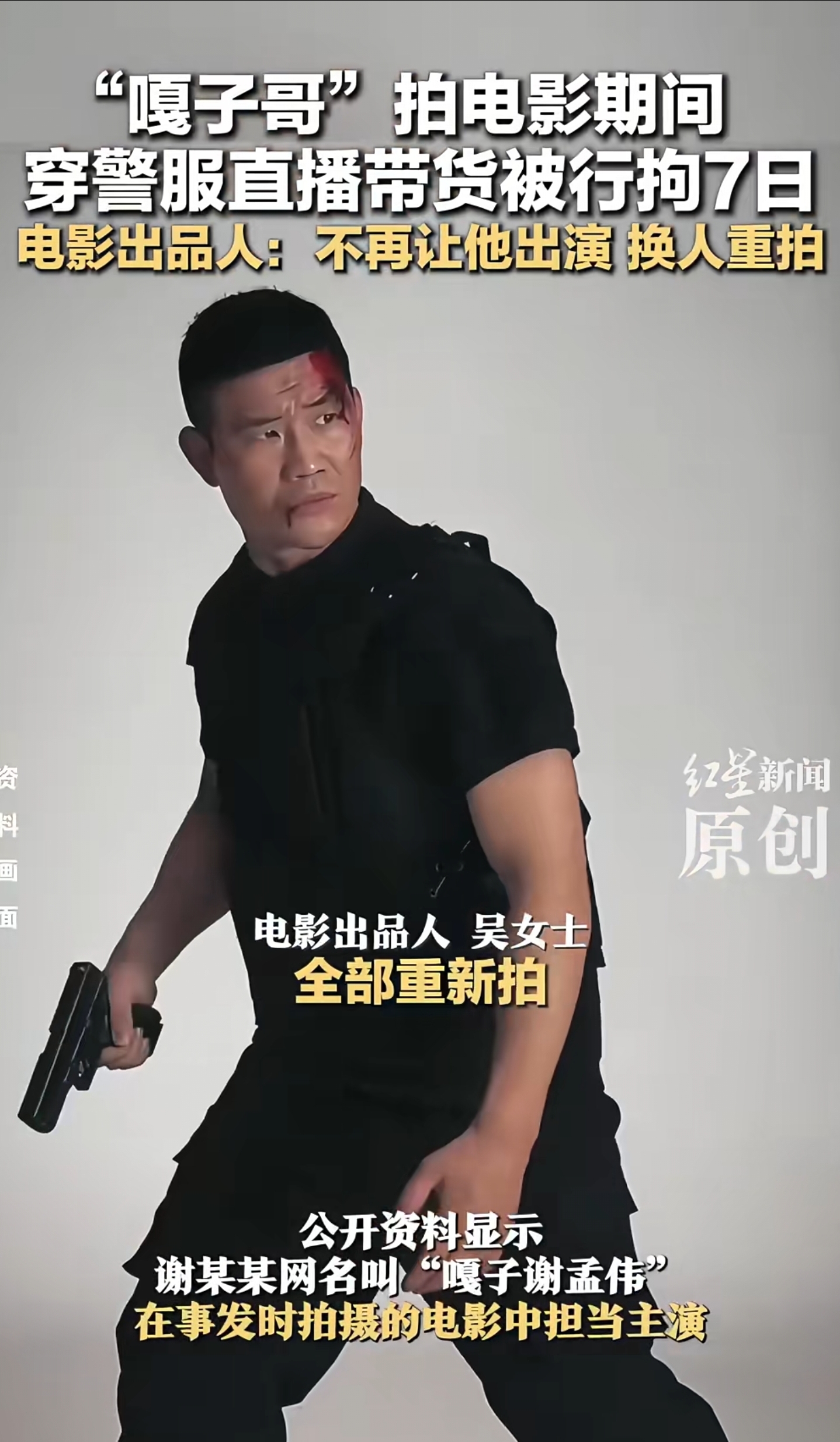 目前,谢孟伟的行政拘留正在执行中,而《缉毒风暴》剧组已紧急接洽新演员,计划在一周内重启拍摄。这场由警服带货引发的风波,不仅让谢孟伟付出了法律代价和职业损失,更彻底击碎了 "小兵张嘎" 的童年神话。正如网友所言:"法律不会因为你演过英雄就法外开恩,观众也不会永远为消耗情怀的行为买单。" 在流量与法律的天平上,谢孟伟的坠落为所有公众人物敲响了警钟。
