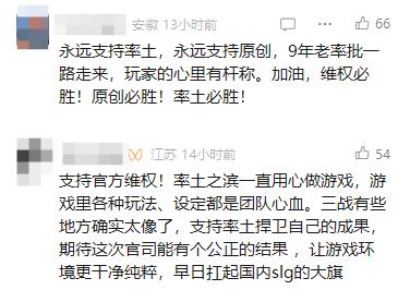 无论是过去十年的创新玩法,还是今年在玩法和营销上的大胆突破,《率土之滨》都展现了其对原创的执着追求。玩家们也始终坚定地站在《率土之滨》身后,支持它继续维权。