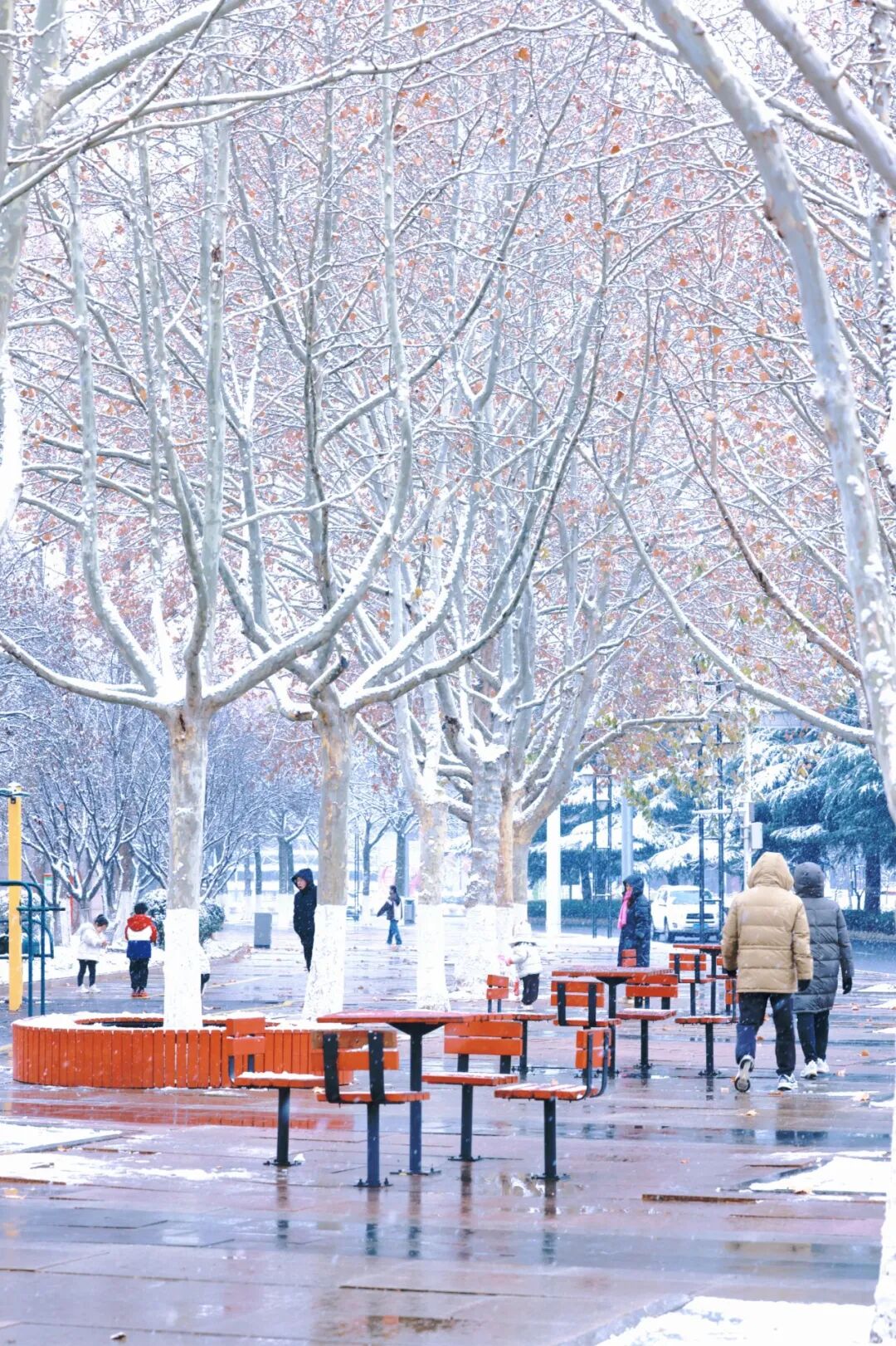 三里河公园,早已被雪雕琢成了童话世界。岸边的垂柳裹上银装,成了 “千树万树梨花开” 的实景。蜿蜒的小径被白雪覆盖,延伸向远方,像是在邀请人们奔赴一场冬日的约会。孩子们堆雪人、打雪仗,笑声清脆,与落雪的簌簌声交织,成了胶州冬日最动听的乐章。