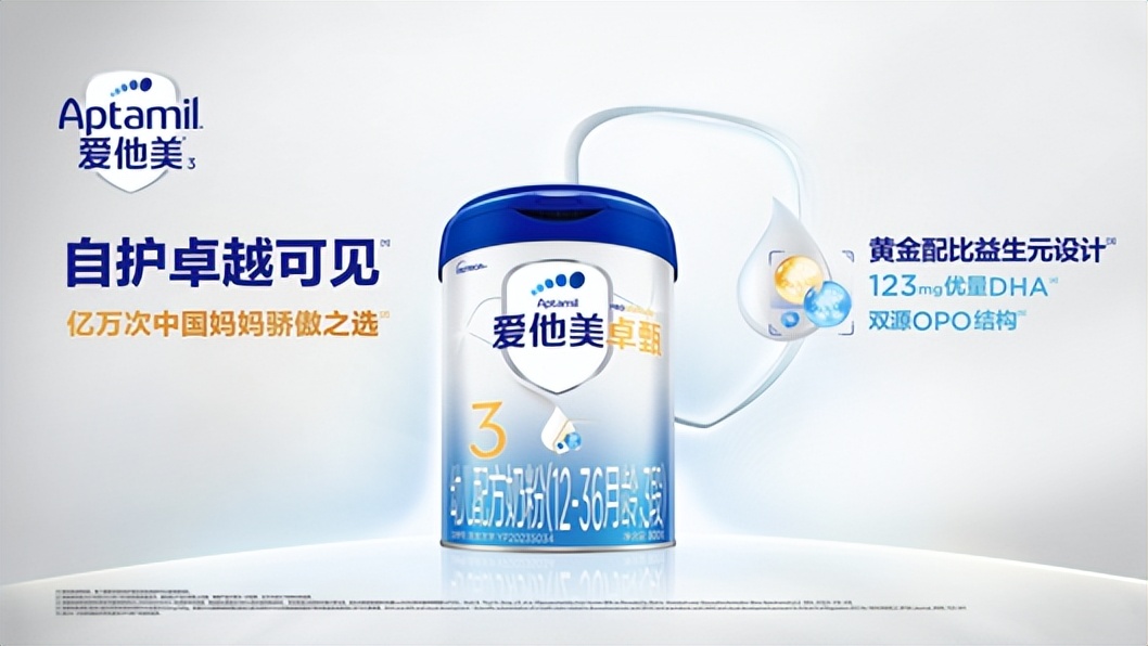 爱他美卓系列于2023年推出傲视升级的卓傲3,同年爱他美新国标羊奶粉卓徉3也进入中国消费者的视野。此次上市的卓系列新品爱他美卓甄3,在核心成分黄金配比益生元设计的基础上添加123mg/100g优量DHA,助力宝宝智慧成长,更有双源OPO结构,帮助促进关键营养素的吸收,自护卓越可见。