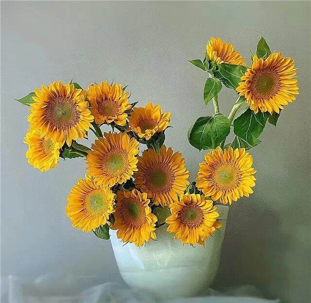 花团锦簇,是妻子最擅长拨弄的一种。粉色的康乃馨和紫色的玫瑰花相互穿插,由里向外一圈一圈以圆弧走低,在空间形成伞状。这种圆活丰盈,连绿叶过渡都略去了,仿佛岁月回流,如鉴芳年。那是妻子用“花字”码成的“回忆录”?每观于此,难免得此中会意。其间,时有奇作。向日葵的插花,以棱形高低搭配,花盘的饱满,纹理的婀娜,简直天之骄子。妻子在藻饰上下了功夫,其边缘花盘枝杆曲折,中间则高直,朴拙的线与华丽的团相绞扶疏,成了绿与黄的交响。尤其是汝瓷花盆,蚕色相托,满目声声色色,意态飞动。杜甫写昭君“画图省时春风面”,其实,岁月的画笔毫不留情,哪能人老不珠黄,但在爱花的心态鼓噪下,妻子依然“春风”不逊。