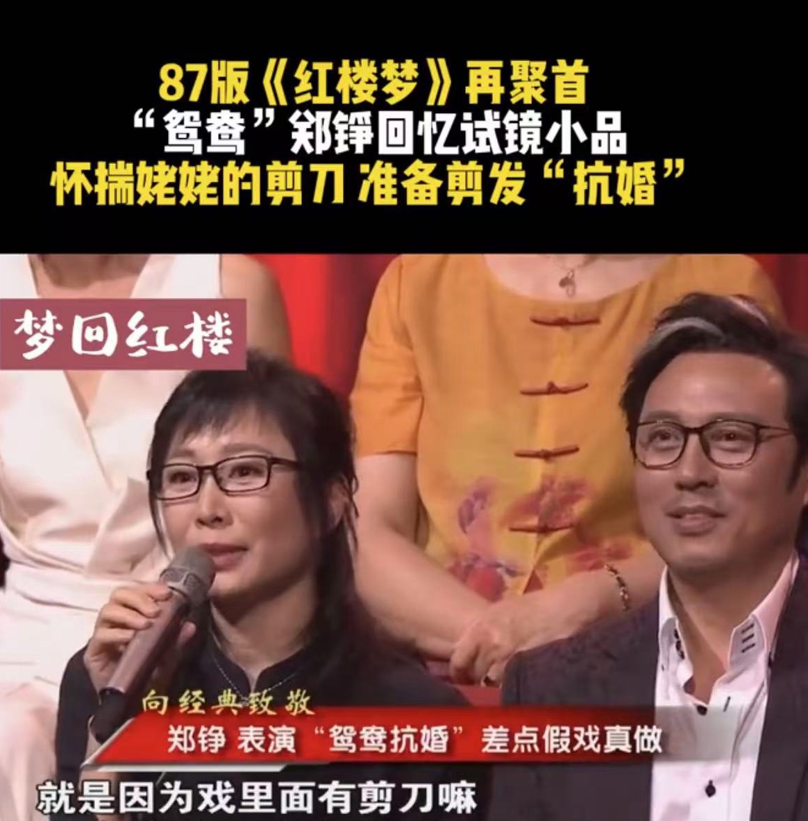《红楼梦》筹备时,郑铮准备了“鸳鸯抗婚”的片段去试镜,她演戏十分投入,差点就真的要用剪刀剪掉头发,被导演叫停。