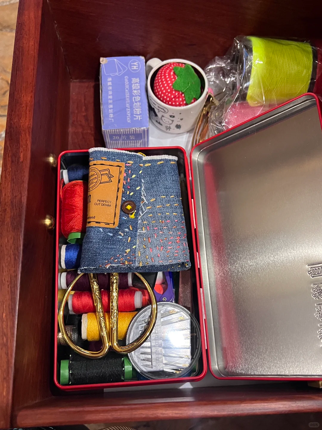 不过在老一辈人的眼中,茶叶盒真的是收纳针线盒最好的方法,用茶叶盒来收纳针线,不用担心针线会跑的到处都是,毕竟严丝合缝的茶叶盒真的很好用。