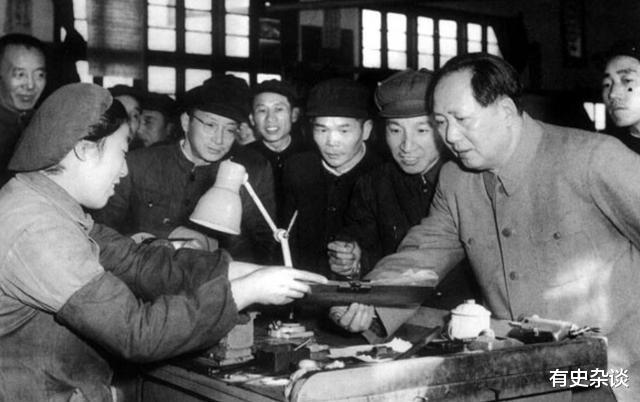 见毛主席发声,警卫员张仙朋迅速上前,为毛主席续上热茶,并清空烟灰缸中的烟头。