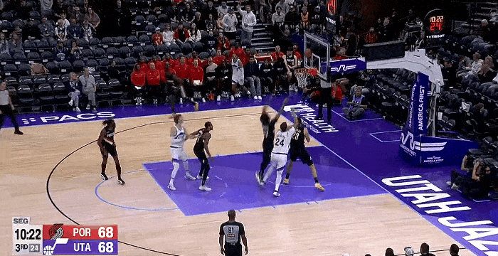 NBA季前赛,爵士对阵开拓者的比赛正在进行中。
