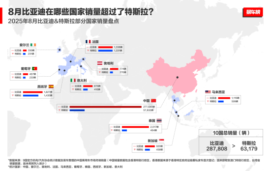 8月比亚迪品牌在全球多国销量超过特斯拉