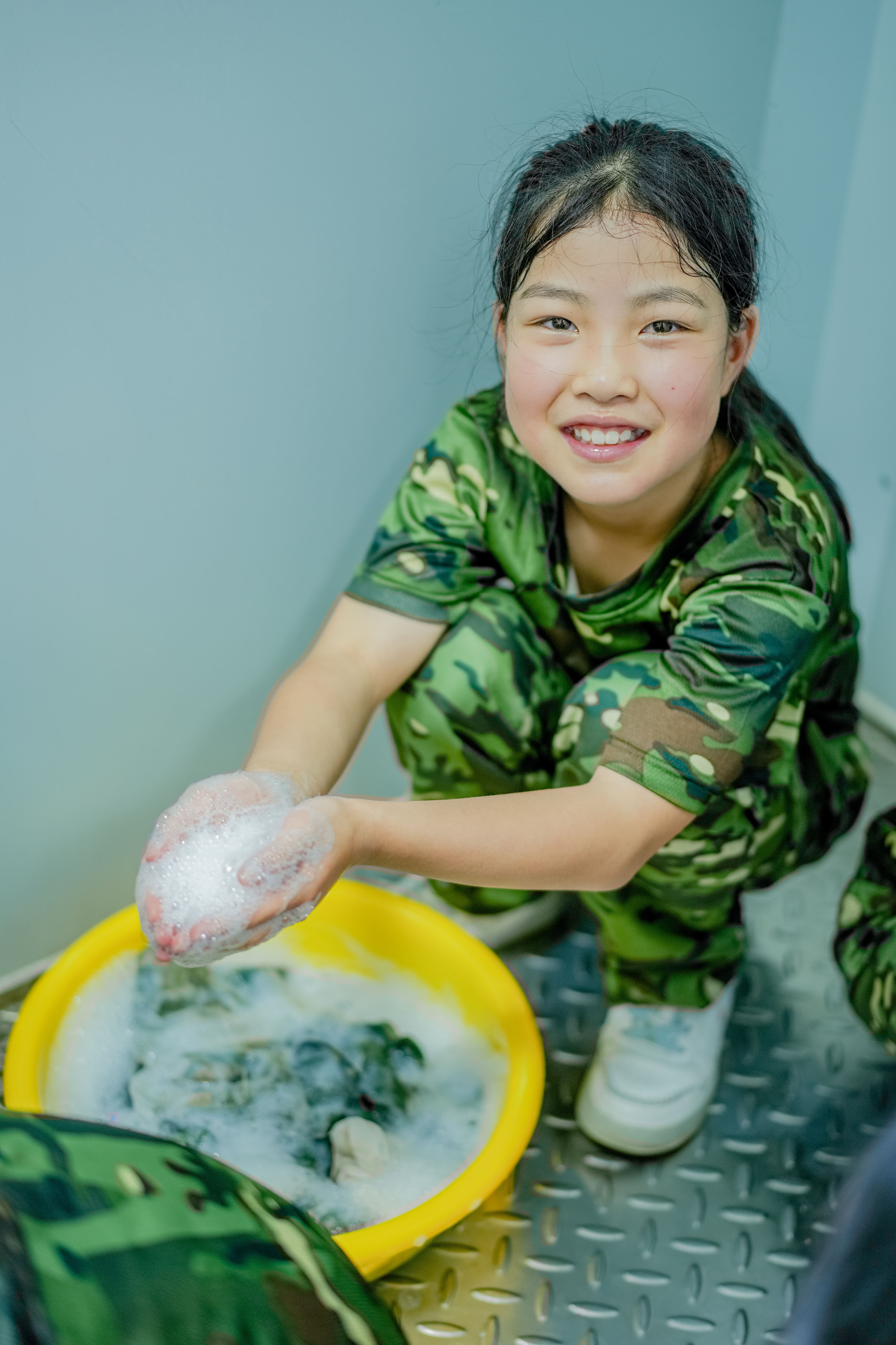 我们的营地也处处透着“接地气”:每日三餐都是家常菜式,两荤两素一汤,搭配水果和粗粮,确保营养均衡;住宿是8人空调营房,独立卫浴,生活老师会引导孩子自己整理床铺、清洗衣物,培养自理能力;每天傍晚,我们会把孩子的训练、用餐、休息照片发到家长群,有任何问题,家长都能随时联系到营地老师,不用隔着屏幕瞎担心。