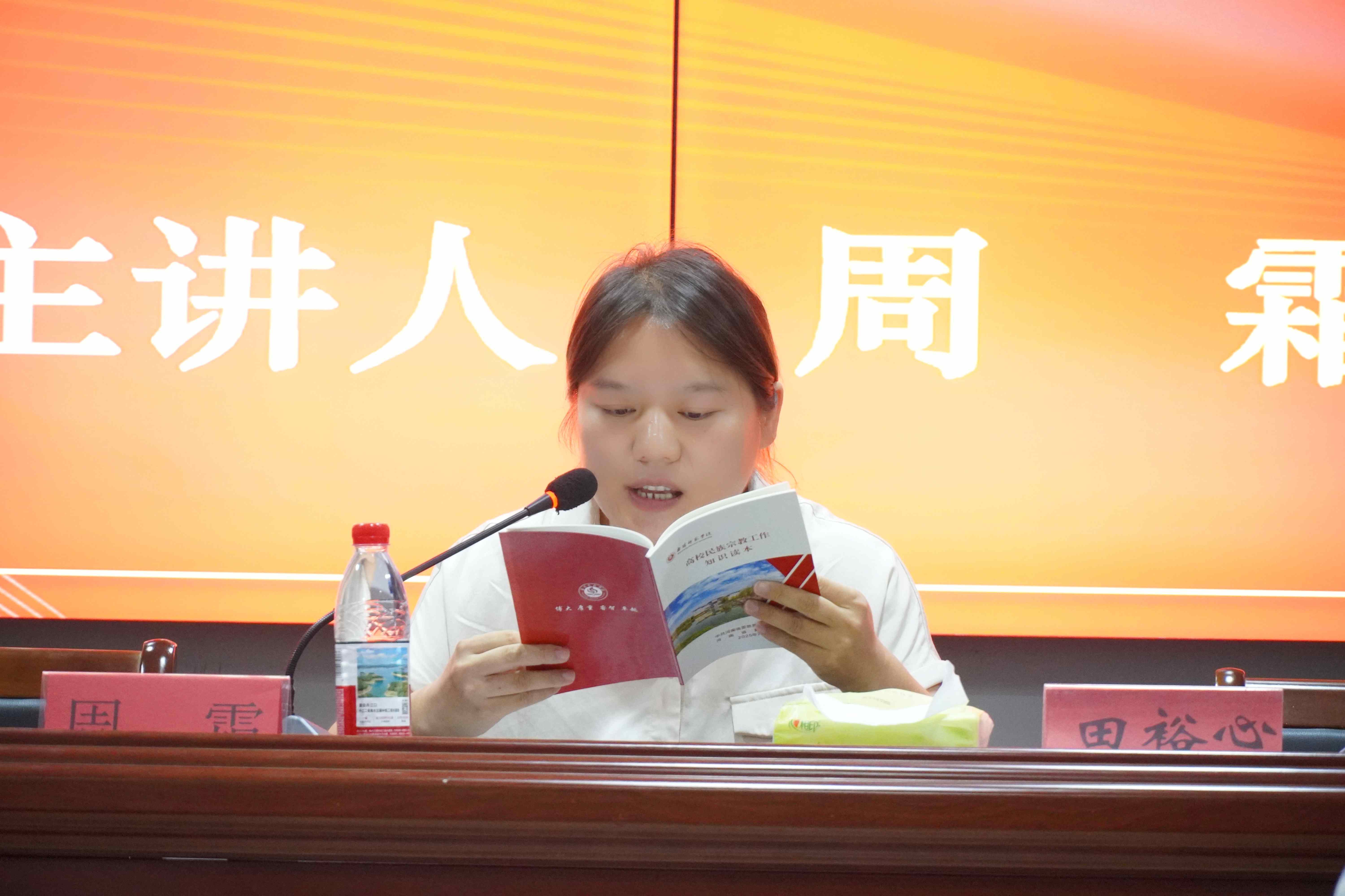 会议伊始,周霜书记系统解读了我国宗教政策法规。从宗教信仰自由的法律边界,到校园抵制非法宗教活动的具体要求,再到识别邪教渗透的实用方法,周霜用通俗易懂的语言进一步巩固了同学们对宗教政策的认知。随后,田裕心结合辅导员工作经验,以“把安全融入日常,让防护成为习惯”为核心,用贴近学生生活的案例与互动,将抽象的安全知识转化为学生可感知、能落地的日常行动指南。会议结束后,同学们纷纷表示,宗教政策要记牢,安全技能更要会用,这都是守护校园和自身安全的必修课。