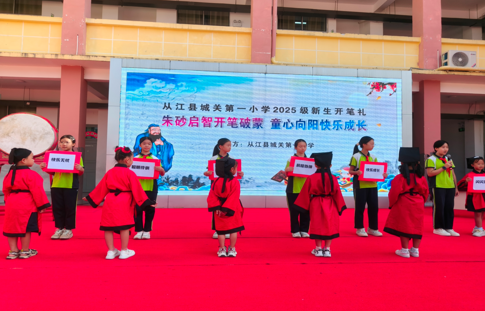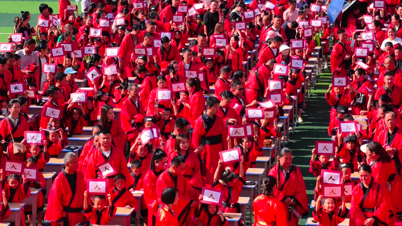 2025年9月18日上午,从江县城关第一小学为一年级新生举办了一场庄重典雅、意蕴深厚的“开笔礼”仪式。学校领导班子成员、一年级全体师生及家长共400余人齐聚校园,共同见证了这一传统与现代教育相融合的成长时刻。