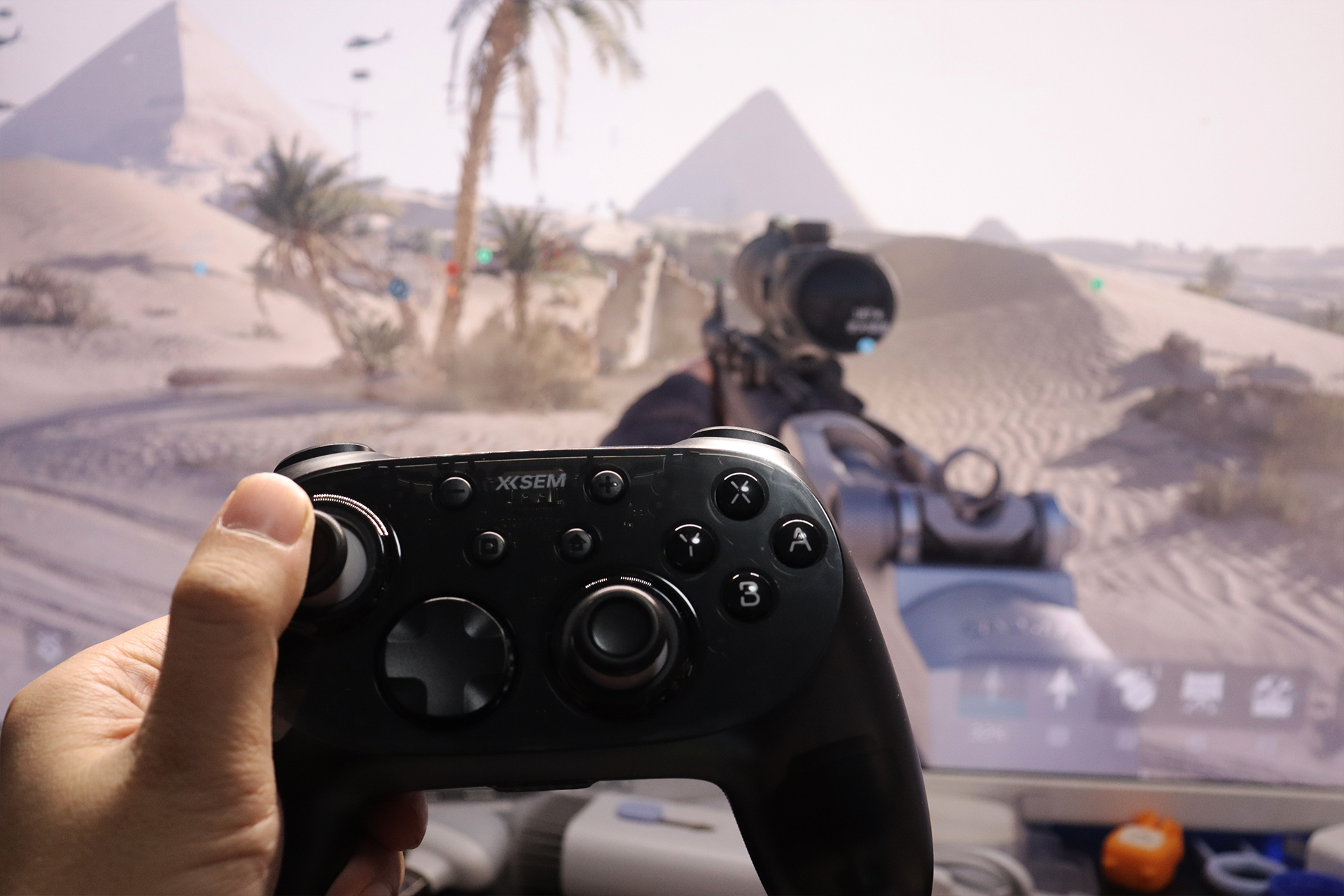 我这种手汗星人特别在意细节,GC1 的 L/R 扳机键设计堪称点睛之笔 ——15° 弧度贴合手指轮廓,0.25mm 防滑纹理增加摩擦,按压时的触感从「按」变成了「扣动」,就像真枪扳机一样有仪式感。在《三角洲行动》的狙击关卡中,轻轻扣动扳机,配合 2.5N 的真实反馈力,枪械击发的后坐力清晰可感,这种沉浸感是普通手柄难以企及的。