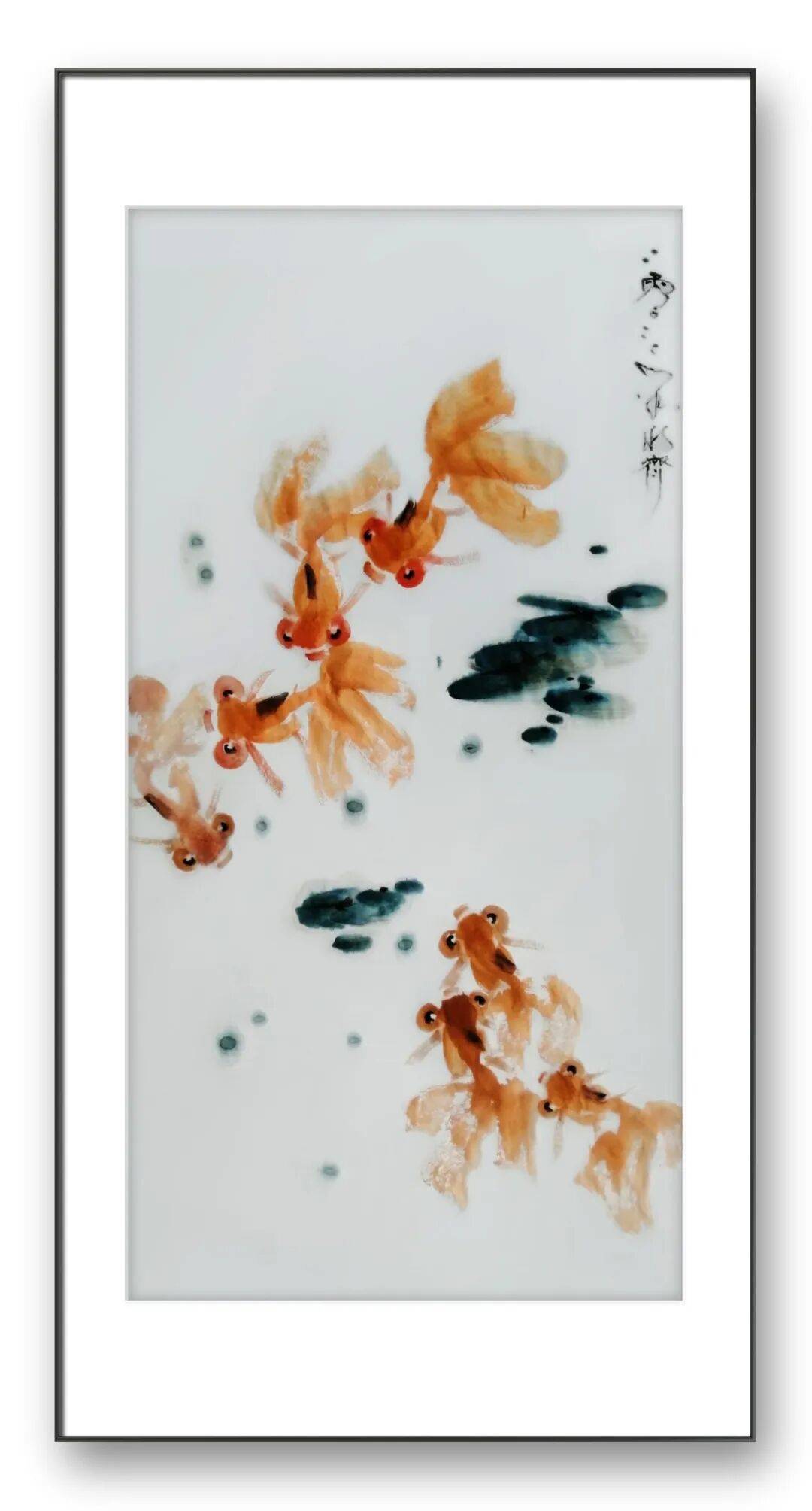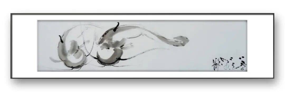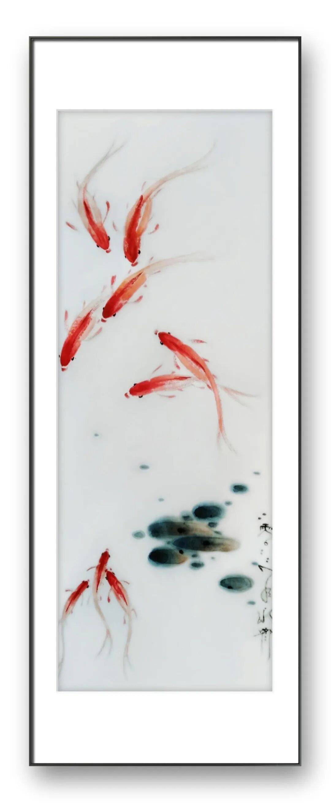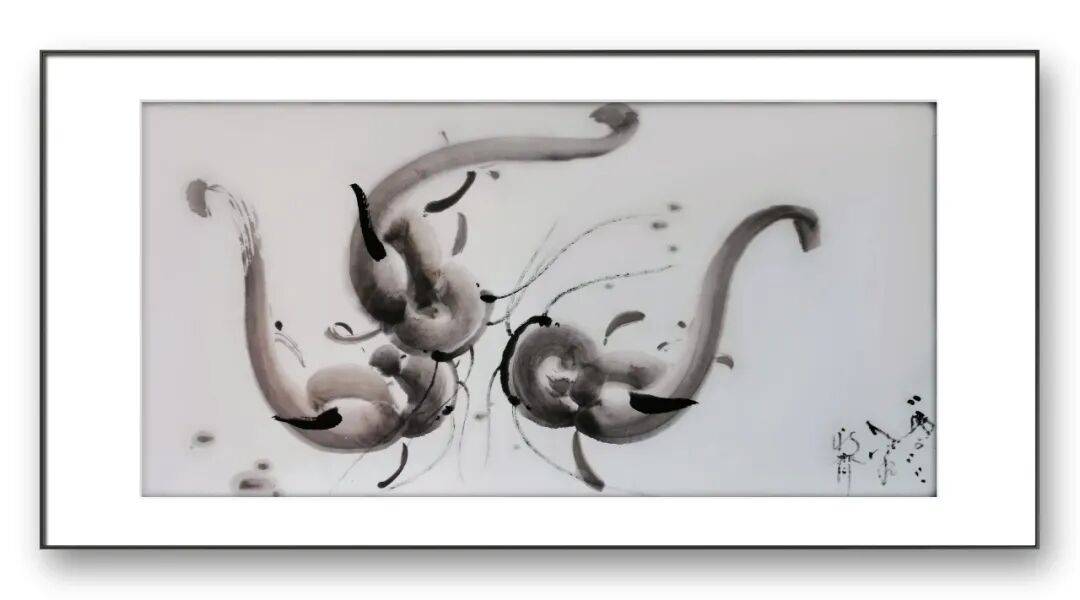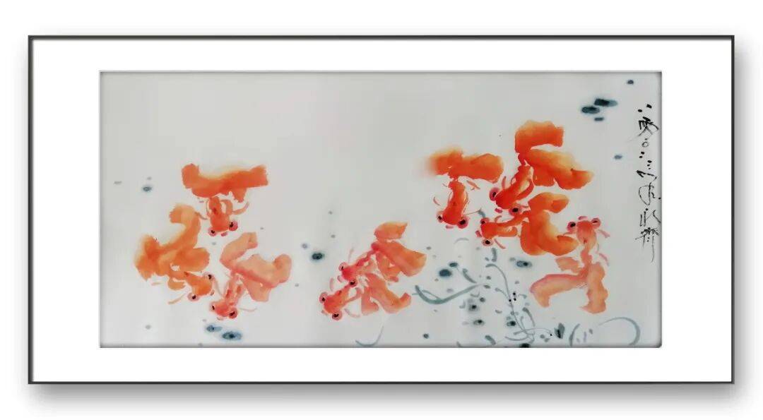 在画鱼的身体时,宁永齐先生多采用淡墨渲染,辅以浓墨点染鱼鳍、鱼尾,使鱼的形态立体感十足;在表现水的意境时,他则以留白与淡墨相结合的方式,通过墨色的晕染营造出水面的波光粼粼,让游鱼仿佛真的穿梭于碧波之中,虚实之间,意境悠远。尤为值得一提的是,先生在笔墨运用中融入了自己的情感体验,每一笔、每一划都饱含着对生命的热爱与敬畏。他画的鱼,线条中透着灵动与洒脱,墨色里藏着温润与厚重,仿佛每一条鱼都有了自己的性格与灵魂,在笔墨的世界里自由游弋。