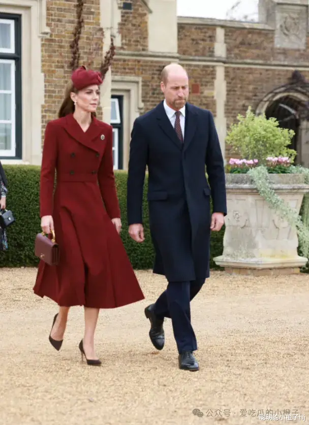久病的凯特王妃穿着一袭暗红色的连衣裙,这还是去年接待丹麦国王夫妇时,穿的旧衣,凯特近期似乎很喜欢穿旧衣出席公务,