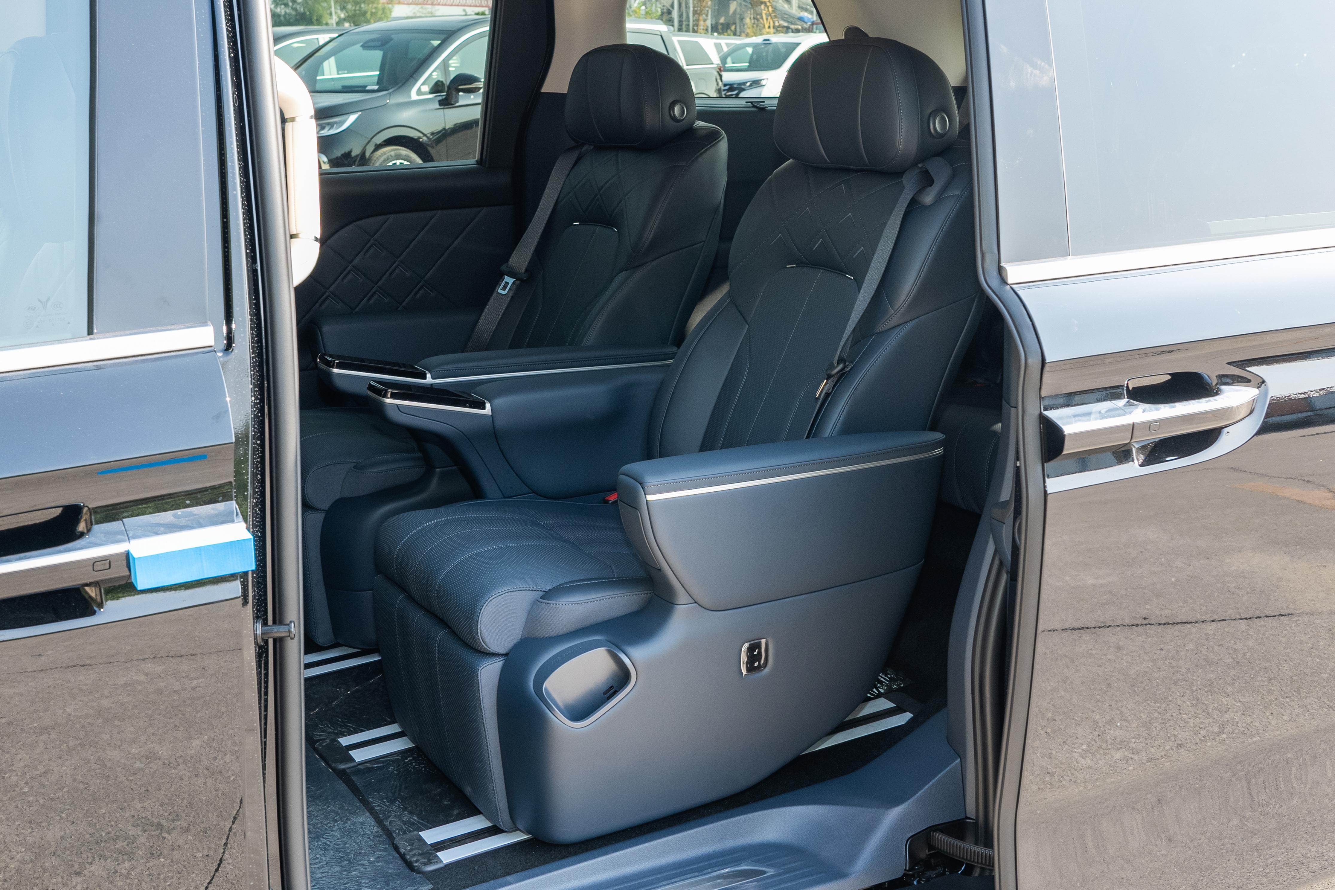 进入座舱,7㎡超大宽适平层的空间优势即刻显现,三排七座的布局实现“座座皆首席”的尊享体验。26款新车新增“紫米”“玄青”两种内饰方案,搭配Zebra wood斑马木纹饰板与车门透光饰板,大面积软包材质包裹全车,OEKO-TEX®母婴级亲肤面料触手可及,从视觉到触觉都传递着越级豪华感。二排升级的AI零重力按摩舱堪称移动的奢享SPA,36个高精度传感器1秒适配人体良好姿态,独特的26点叩击式按摩功能覆盖颈、肩、腰、臀、腿全部位,配合双SPA级零重力座椅的精准承托,长途出行也能全程舒展身心。双6英寸智能扶手屏与17.3英寸3K娱乐屏形成交互矩阵,侧置50W无线快充让储物与补能无缝衔接,细节之处尽显人性化考量。