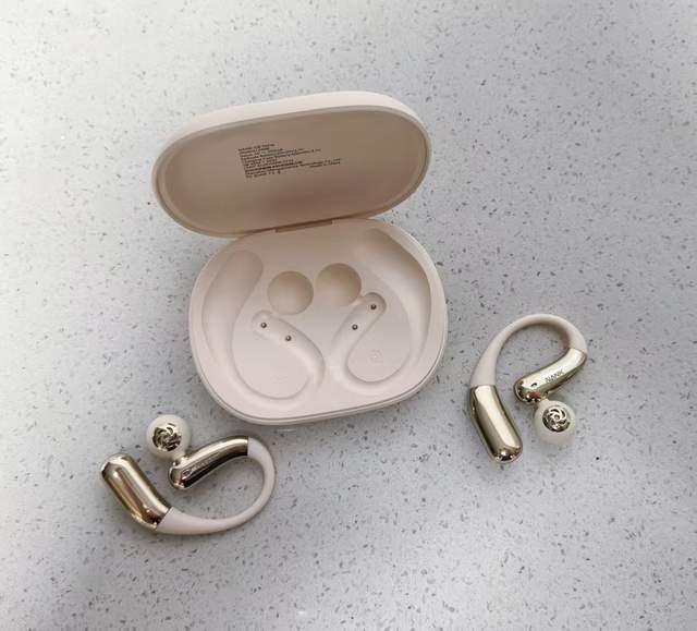 先说这神仙颜值!卡其色充电仓像块高级奶糖,随手揣兜里完全没负担。重点夸夸这个挂耳+入耳的王炸设计,航空硅胶+记忆钛丝的组合绝了!上周戴着它跑马拉松,愣是忘了耳朵上还挂着东西,跑完耳朵连个红印子都没留。戴眼镜的姐妹看过来!EAA2.0悬停技术让镜腿和耳机和谐共处,再也不用体验"摘耳机必碰倒眼镜"的魔咒了!