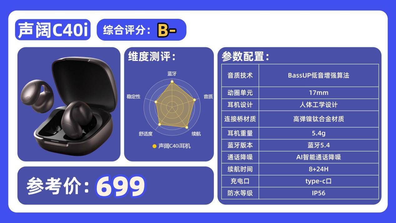 在音质方面,耳机采用了自研的SuperSound OS3.0声学系统和NanoBass双核引擎,这个配置在百元档位真的很少见。三频的表现均衡,细节很清楚,人声自然、干净,低频有弹性,高频通透不刺耳。它还拿到了金耳朵品鉴的A级监听认证,被不少发烧友当成开放式耳机的音质参考线。