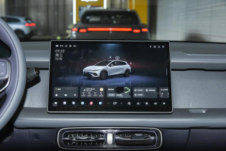 内饰方面,座舱内采用了全系黑化哑光枪灰镀铬饰件,应用双辐式平底多功能方向盘和电子怀挡设计,中控台两侧空调出风口配有金色饰条点缀,搭配8.8英寸全液晶仪表和14.6英寸2.5K中控屏,辅以Leapmotor OS 4.0 Plus系统和高通骁龙8295座舱芯片来看,在操作流畅度方面没有明显硬伤,并且支持DeepSeek+通义千问双AI语言大模型,对日常人机交互体验也有较好的适应能力。