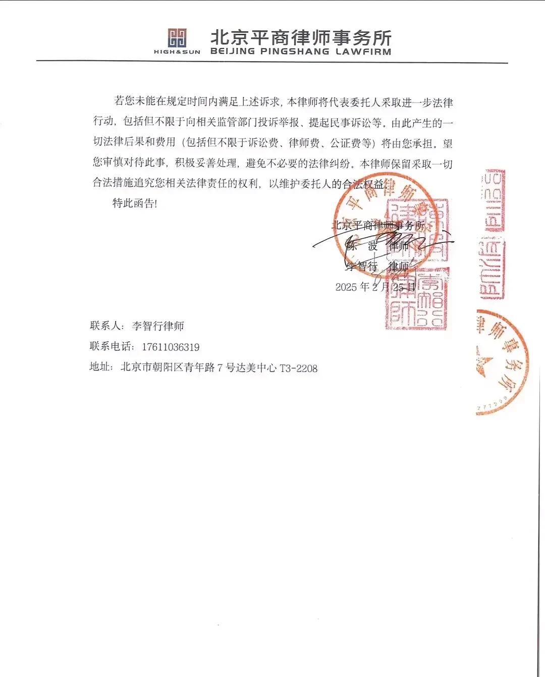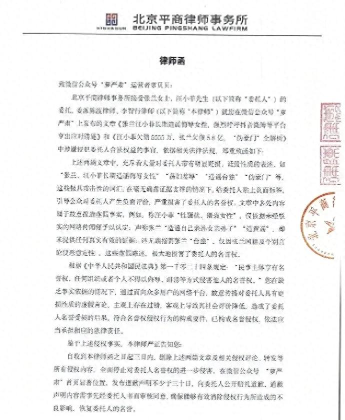 但此次律师函的发出,显示出他在法律维权上的决心与能力。