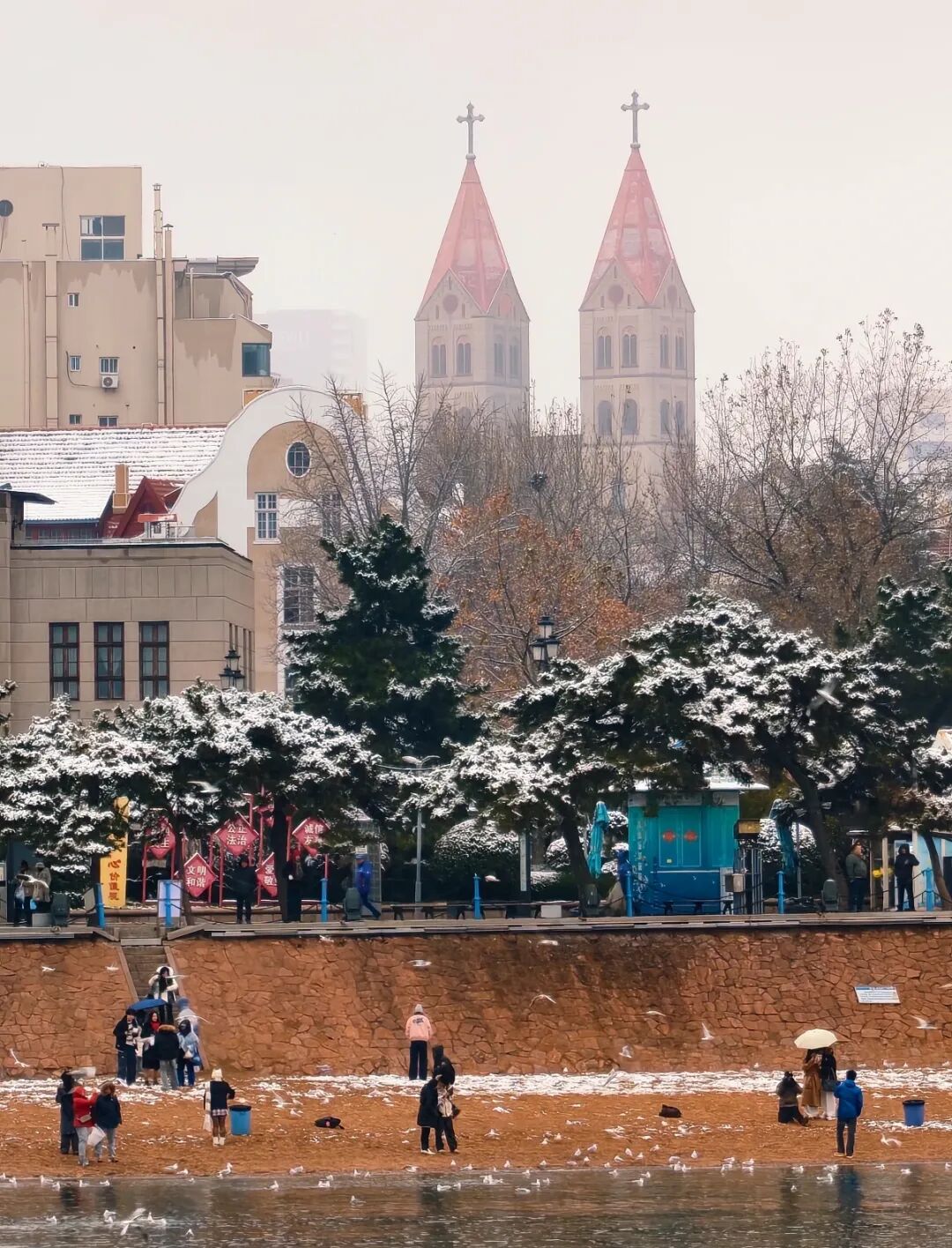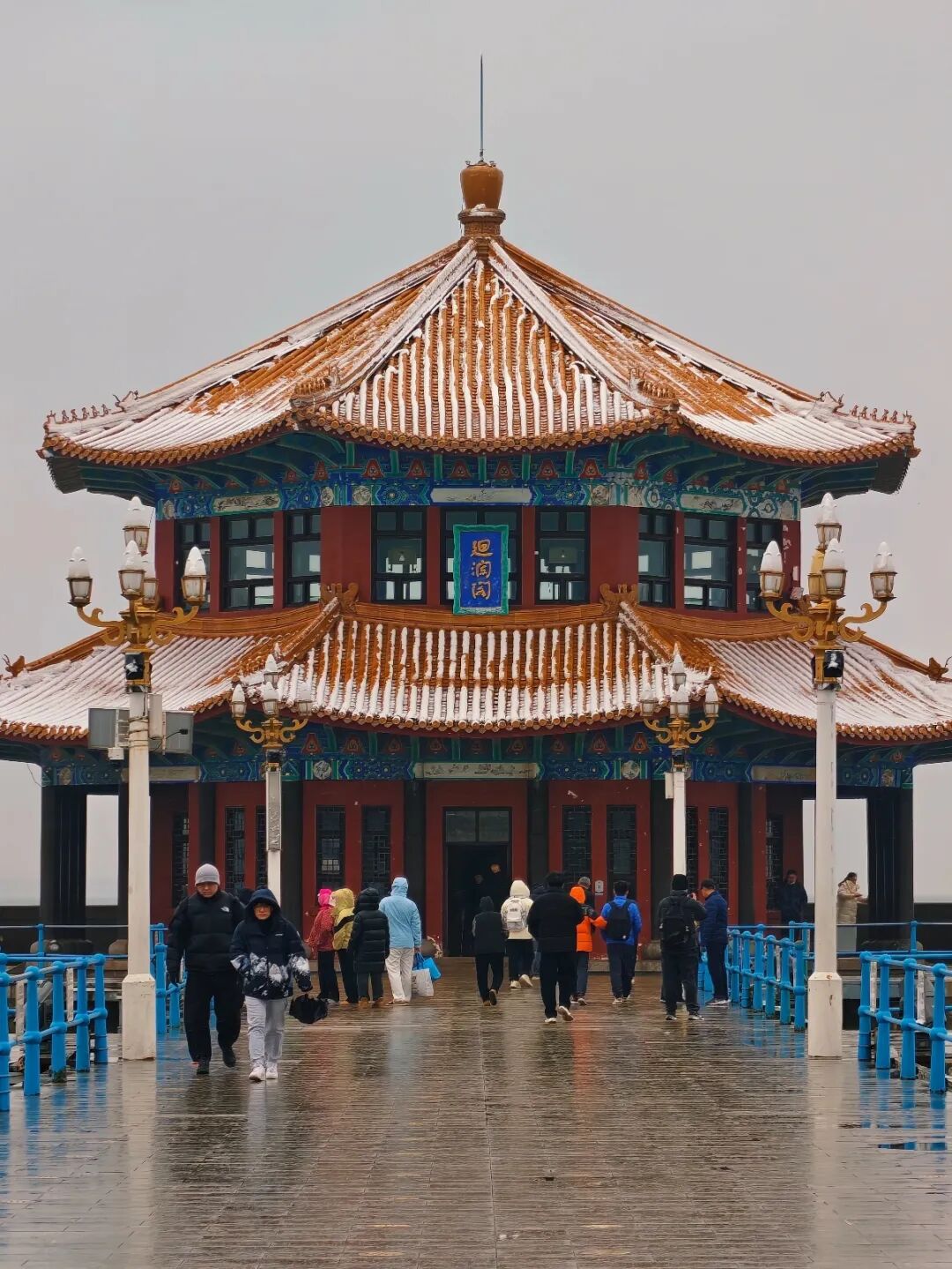 百年栈桥,红瓦覆雪