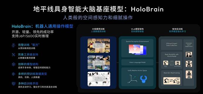 地平线的生态愿景并未止步于汽车。余凯指出,地平线已成为中国最大的消费类机器人计算平台,旗下“地瓜机器人”生态已连接超100家合作伙伴与10万余名开发者,上市产品超过100款,涵盖家庭服务、陪伴娱乐、影像创作等多个领域。为迎接更广阔的具身智能时代,地平线在大会上正式发布了两大开源基座模型:专注于运动智能、让机器人“学会像人一样行动”的具身智能小脑模型HoloMotion;以及致力于赋予机器人拟人化空间感知与操作规划能力的具身智能大脑模型HoloBrain。这些开源举措,旨在降低机器人开发门槛,汇聚全球开发者智慧,共同启迪具身智能的未来。
