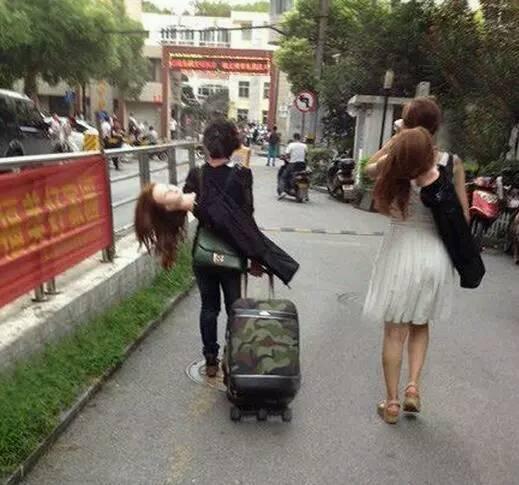 妹子,早上出门就碰见你俩背个假人走在街上,瞌睡都被你们吓醒了
