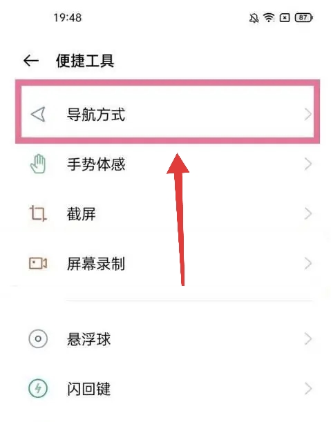 1.首先进入设置主界面,点击 “便捷工具” 图标。2.进入到便捷工具页面后,选择点击 “导航方式”。3.最后到导航方式页