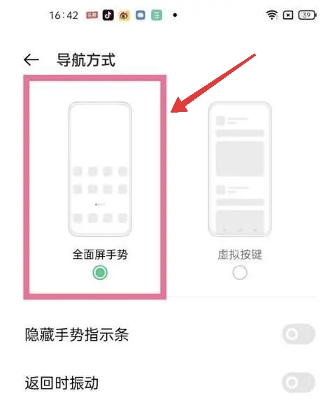 3.最后到导航方式页面后,选择勾选 “全面屏手势” 即可设置成功了。