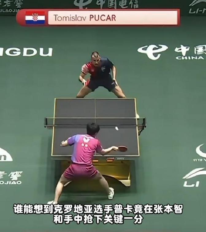 对克罗地亚的男单第三盘,比分看上去普通,过程却像心电图。开局张本智和7-4领先,场边有人已经在准备战术板下一盘的布置,结果普卡突然一把拉高强度,侧旋扰球、正手暴冲连环轰,13-11把局面拧了回来。领先被翻,头号主力的情绪一闪而过,足以给对手信心。