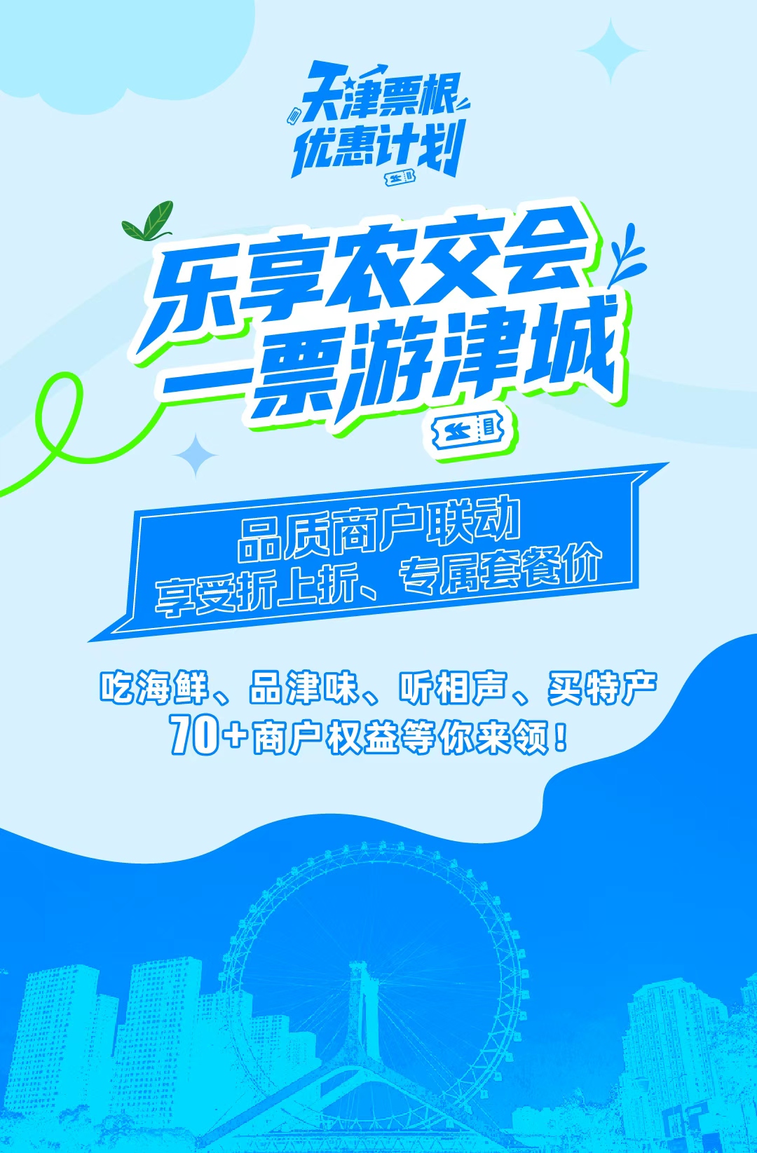为深入贯彻落实国家关于促进服务消费提质扩容的决策部署,进一步激发市场活力,释放消费潜力,加快构建“大消费”格局,由天津市商务局、天津市消费流通促进会打造的“天津票根优惠计划”于10月17日正式启动。