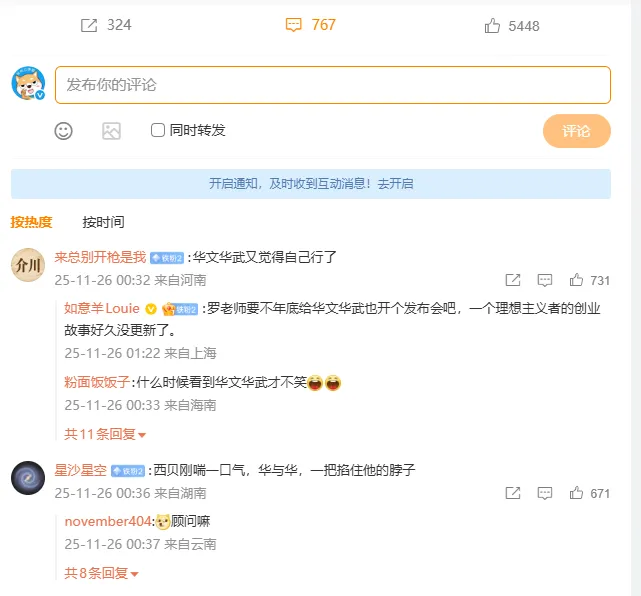 而华杉这条发文,引发了罗永浩的不满,罗永浩很快转发该动态并表示:谁诱的?谁算计了?你想干什么?你要是说不清楚,我就公布录音了。