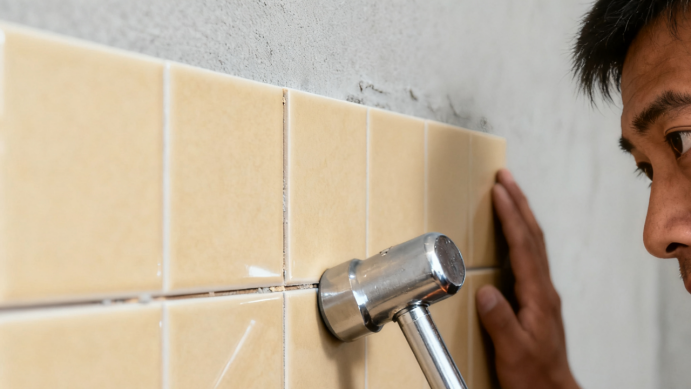 “入住半年瓷砖脱落,工人说空鼓率10%正常,但合同没写!”