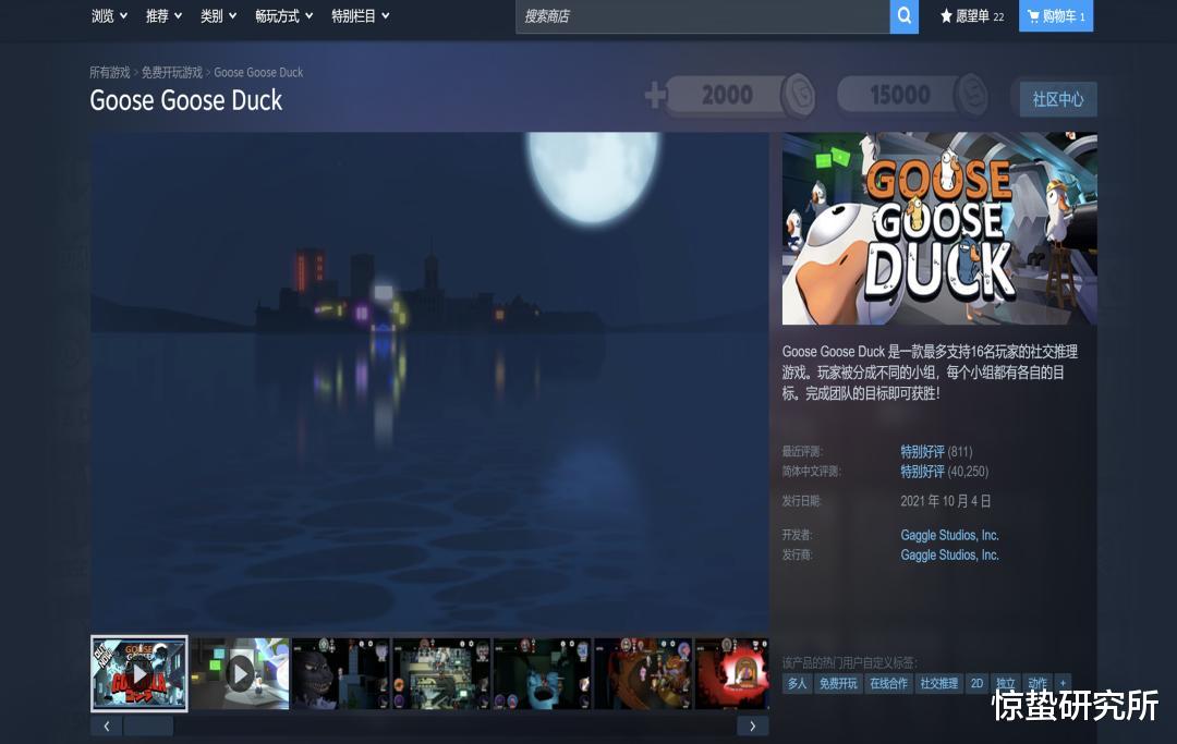 但在惊蛰研究所看来,《鹅鸭杀》开年爆火的市场反应着实有些令人意外。主要原因在于其玩法并非原创,甚至与狼人杀十分相似:玩家分为好人阵营(鹅)、坏人阵营(鸭)和中立阵营,目标不同,互不相帮,通过会议讨论、推理辩论票出他人,使自身所处阵营获胜。