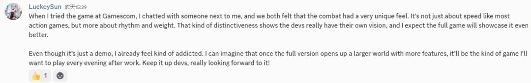 同时也有更多撰写短评的玩家对游戏的美术、战斗、打击感等元素给出好评,尽管目前的《山外山》还处在较为早期的Demo阶段,但其展现出的素质与潜力已经足以吊起他们的胃口,让他们期待正式版的发售。
