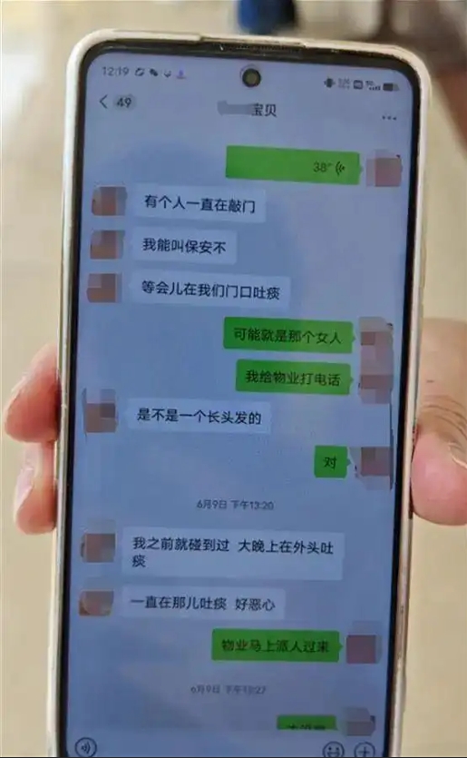当然,从事发后被害人母亲处得知,被害人几乎没有任何社会经验。2024年6月9日中午,王女士收到家中女儿发来的微信消息:“有个人一直在敲门”“在我们门口吐痰”。女儿还询问她是否可以叫保安。记者从王女士提供的聊天记录中看到,她告诉女儿自己已经给物业打了电话,并呼叫了保安。下午1时27分,王女士的女儿回复称对方仍未离开,她透过猫眼拍摄了一段视频。在王女士女儿拍下的视频中,可以看到一名背着挎包的女子背对大门,正走向电梯。