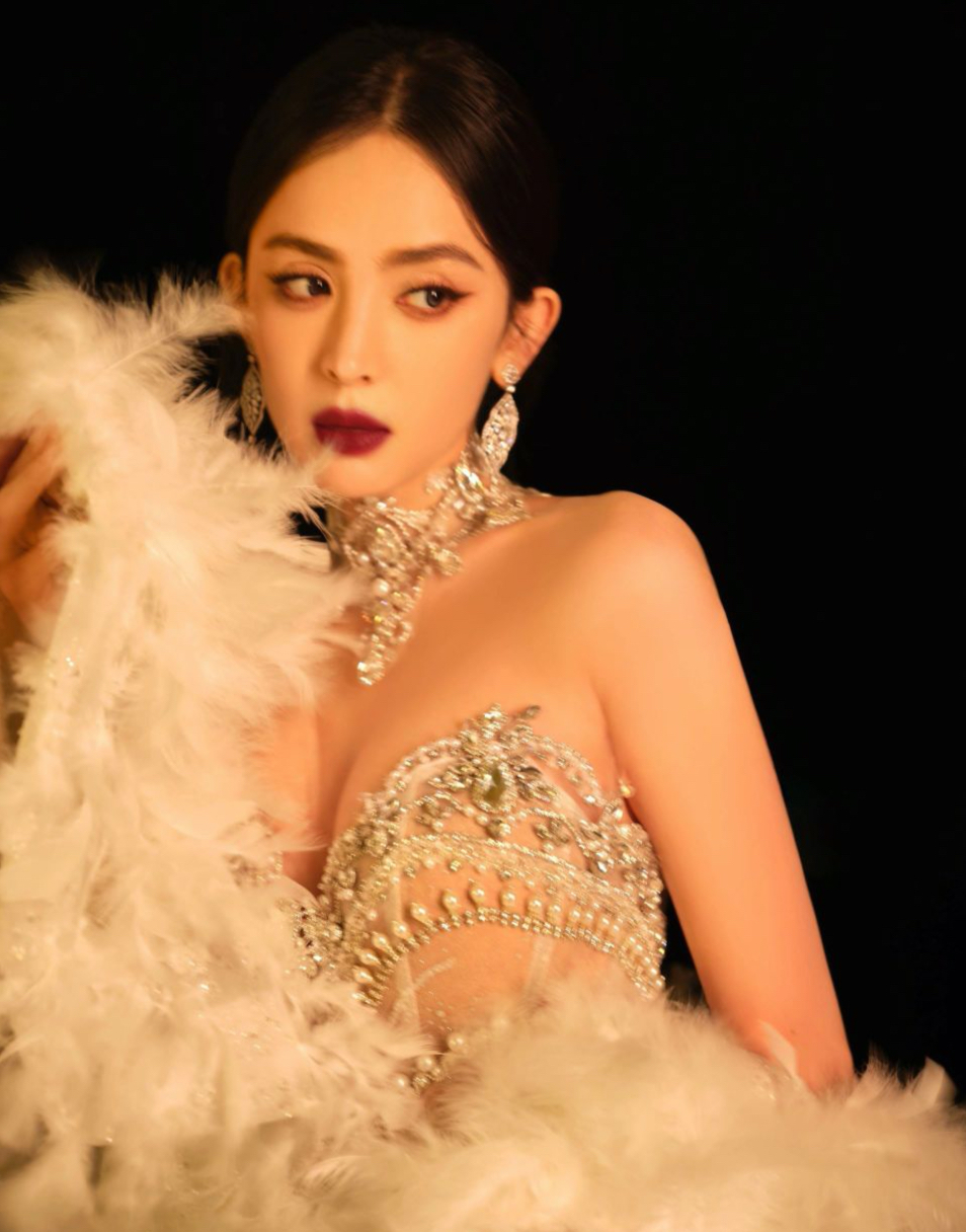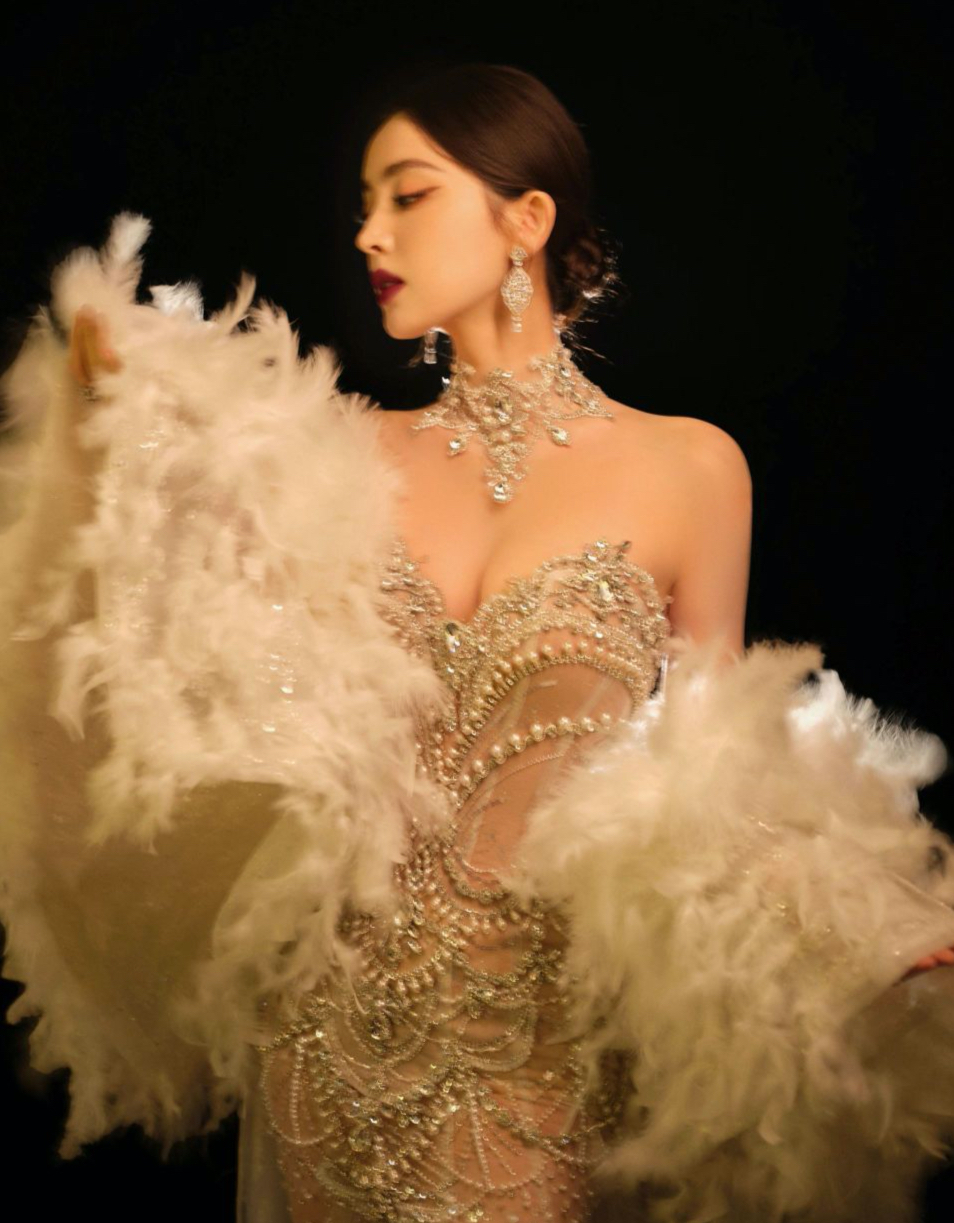 知名女星古力娜扎以其独特魅力,令现场氛围达到沸点。她面容精致,眼睛如天上繁星般闪耀,自信与迷人气息尽显无遗。