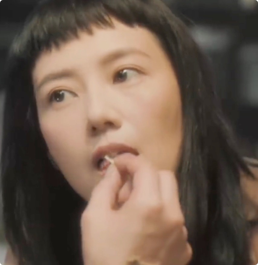 最绝的,是她这次不怕镜头怼脸,皮肤状态非常真实,眼角细纹明显,法令纹轻轻下压,笑起来能看到肌理的起伏。