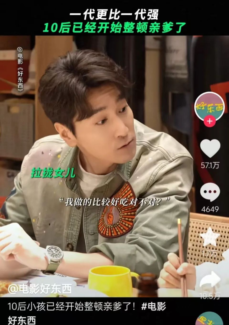 其次,是小孩王茉莉拒绝“爹味”的片段。前夫哥拈酸吃醋,评价王铁梅和小马一起做的面差点意思,转而寻求孩子认同,“我做的比较好吃对不对”,下一秒就被打脸,茉莉耿直发言:“不知道,你就做过一次,还是因为我妈手骨折了。”