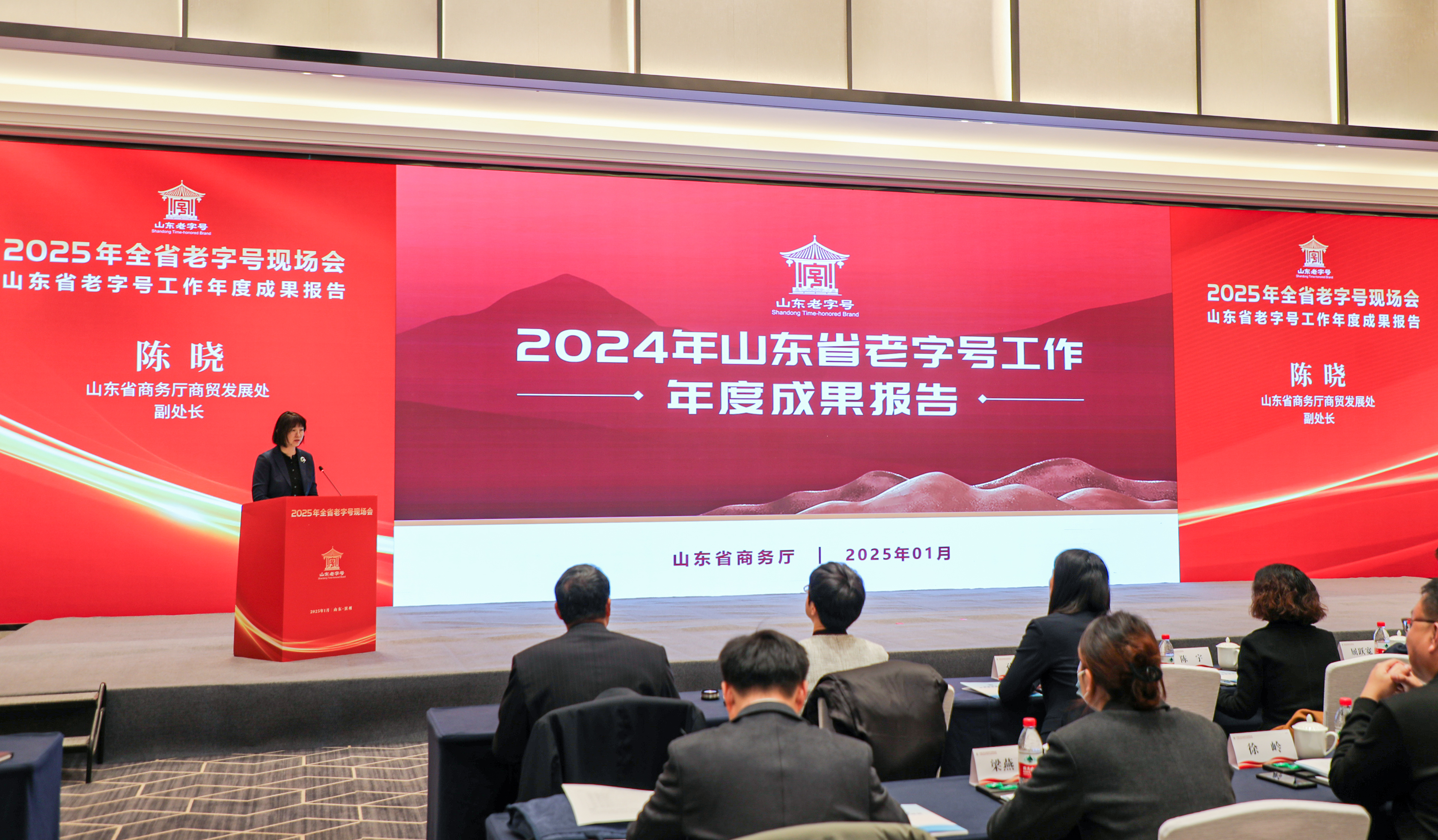 1月9日,2025年全省老字号现场会在滨州召开。会议全面回顾总结全省老字号过去一年的工作成效,并对新一年工作做出部署。省商务厅党组成员、副厅长、一级巡视员张型成,滨州市委常委、副市长屈跃宽等出席会议,省商务厅商贸发展处处长初建伟主持会议,省商务厅、各市商务局、省市两级老字号协会相关负责同志、老字号企业代表共300余人参会。