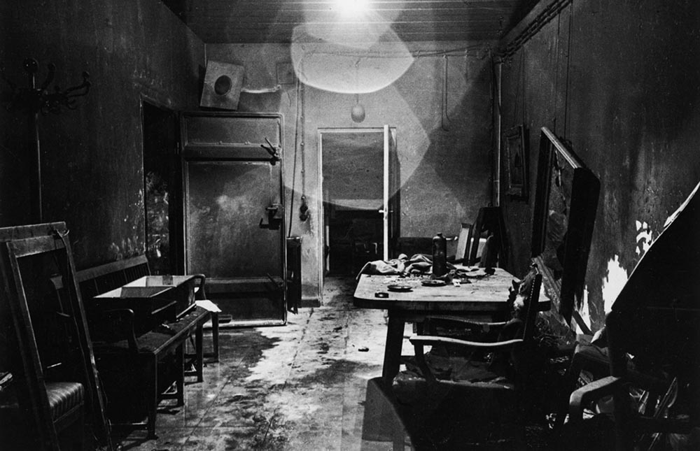希特勒柏林地堡内的一个房间,被士兵洗劫后拍摄的。