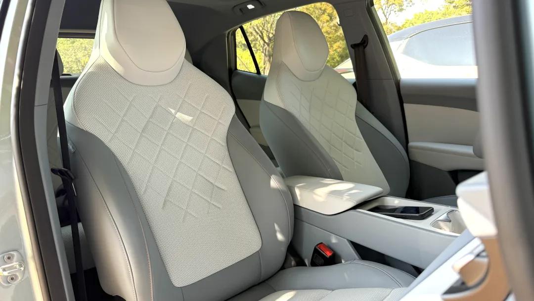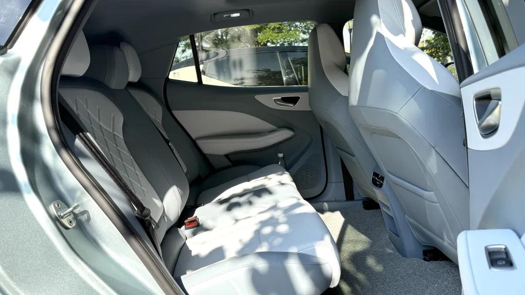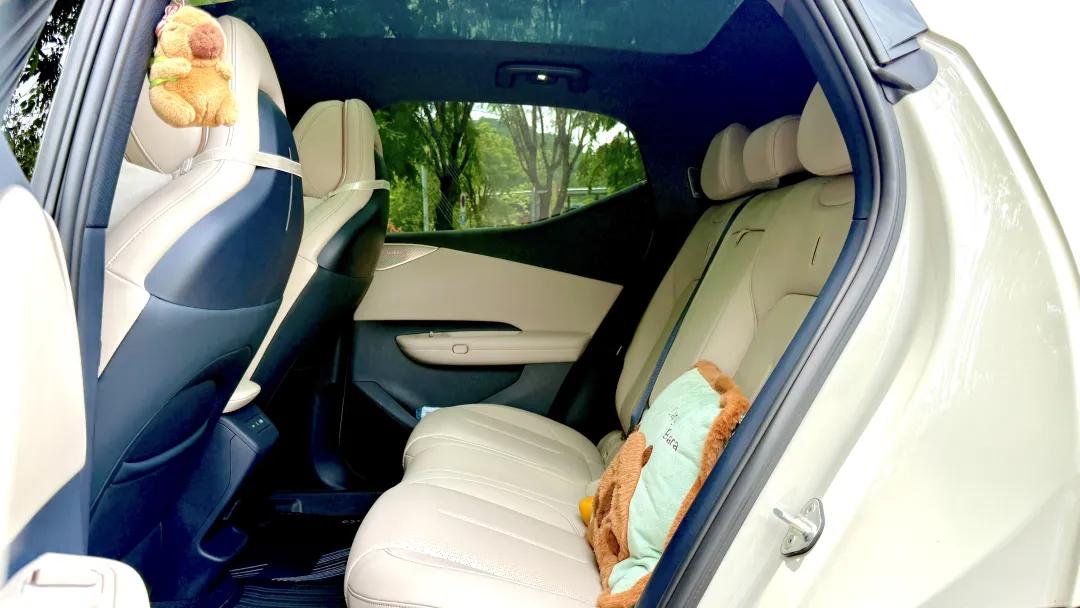 MG4就舒服很多了,前后排座椅坐垫够长,前排腰部支撑到位,长途不累。后排没有蹲小板凳的感觉,靠背角度刚好。
