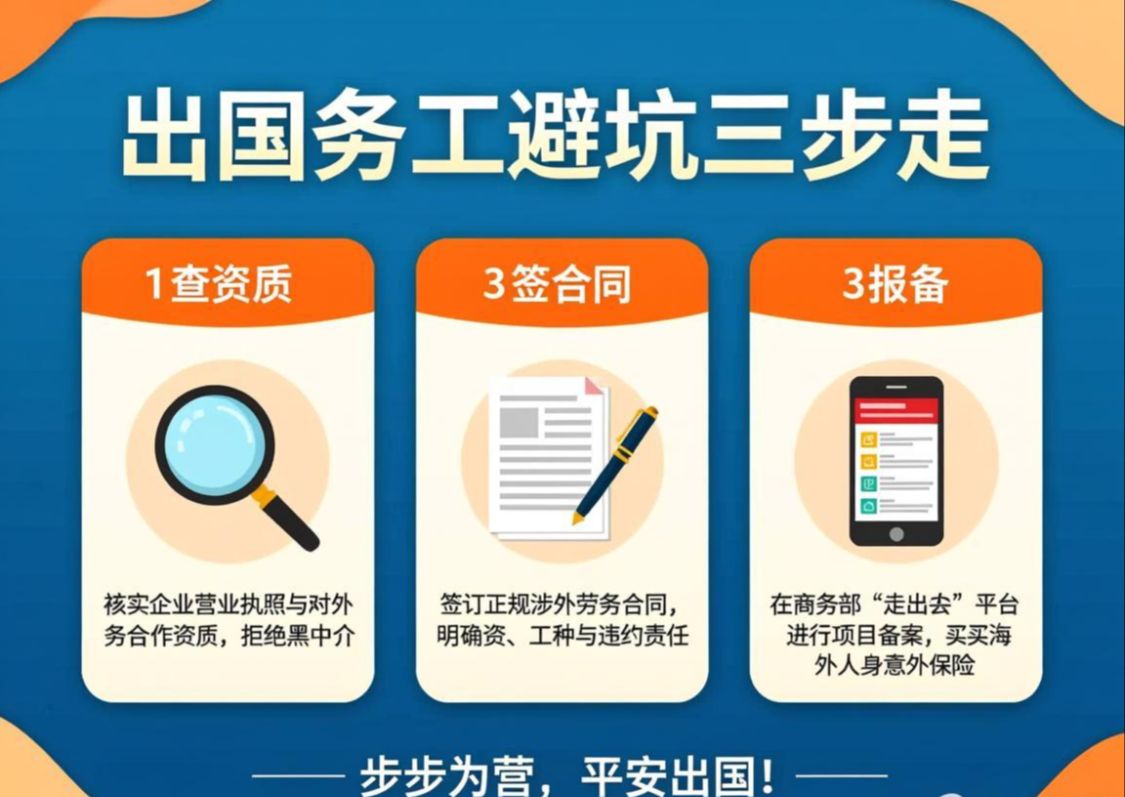 第二,查清底细再动身。 出国打工,劳务合同、公司资质、雇主信息,一样都不能少。
