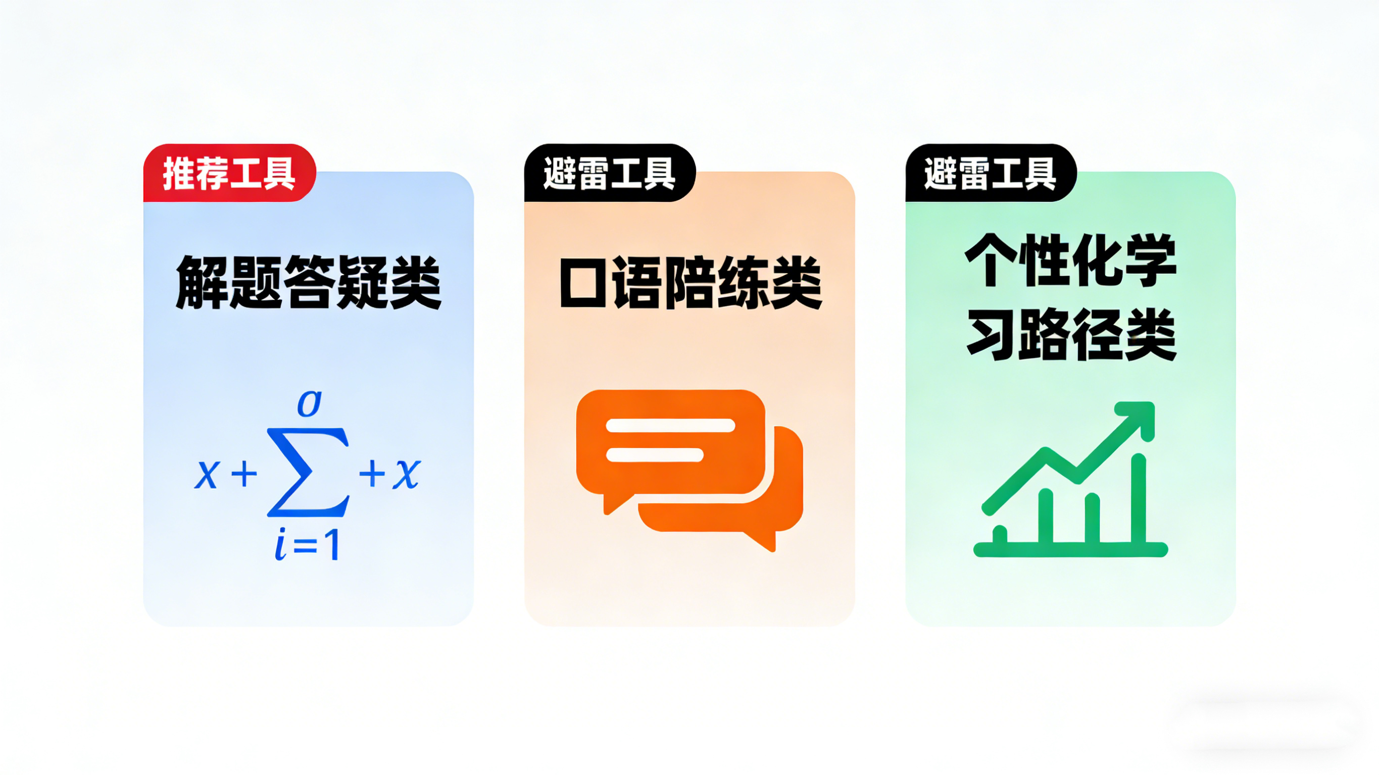 我们选取家长关注度最高的10余款工具,按“解题答疑类”“口语陪练类”“个性化学习路径类”三大核心场景实测,结合数学、语文、英语等具体科目表现,梳理出各场景的优劣代表。