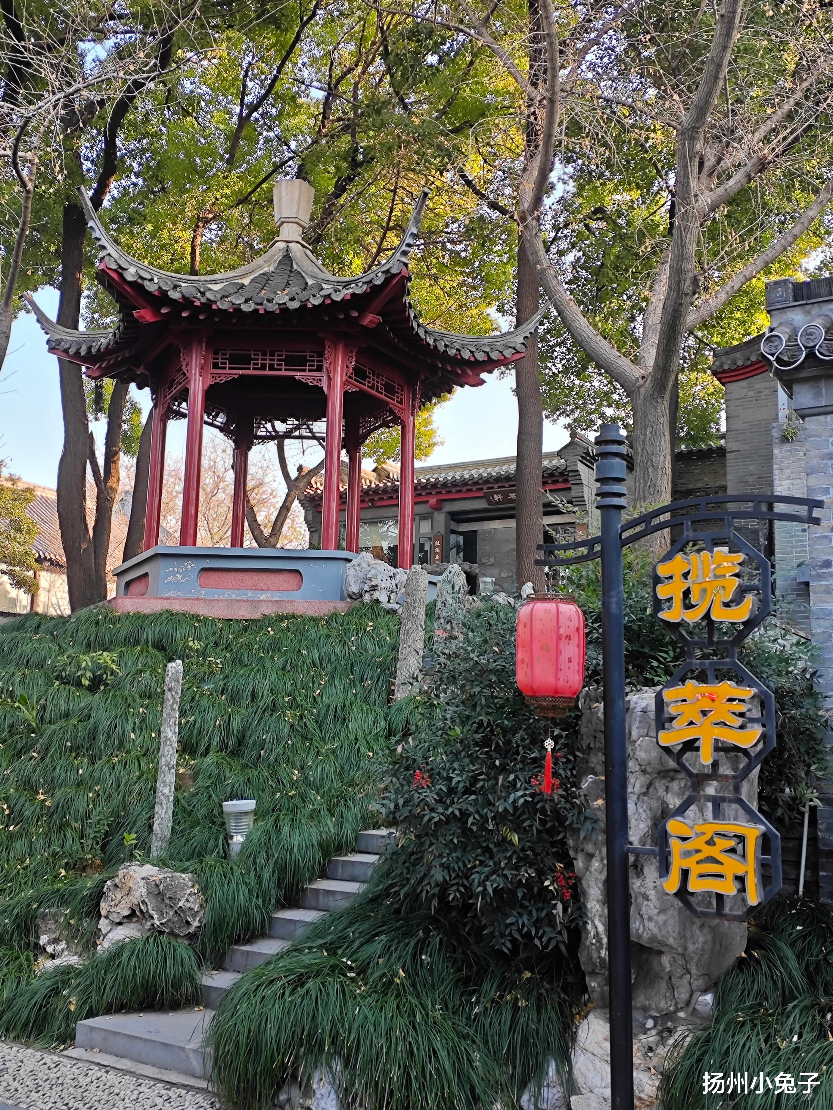 好吧。我摇摇头,感觉很魔幻。翠园里最有名的小五亭桥,里面的工作人员居然没听过?好像进门前看到大门口有个标志牌。去看看。果然介绍上说,“园中部有仿五亭桥草亭五座”。为什么我找不到?