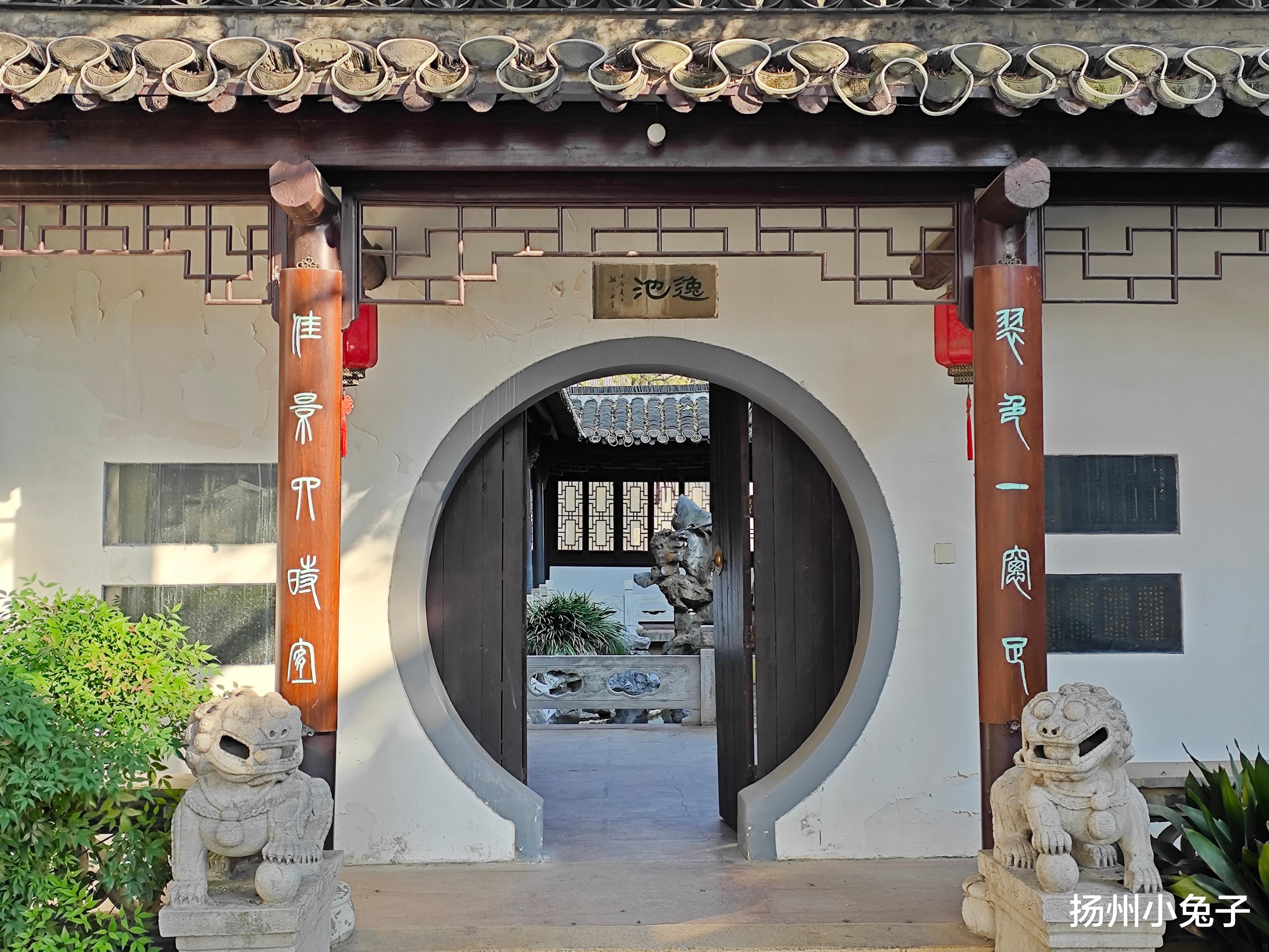 假山和亭台,没有让我失望。扬州的公园,大多有这些建筑与设计,不稀奇。但是,里面有一座仿五亭桥款式的草顶小五亭桥,实在是惊喜地发现。扬州大名鼎鼎的莲花桥,原来不止一座。曾经的园主人,风雅至极地将宴乐活动,放在仿制的五亭桥里。