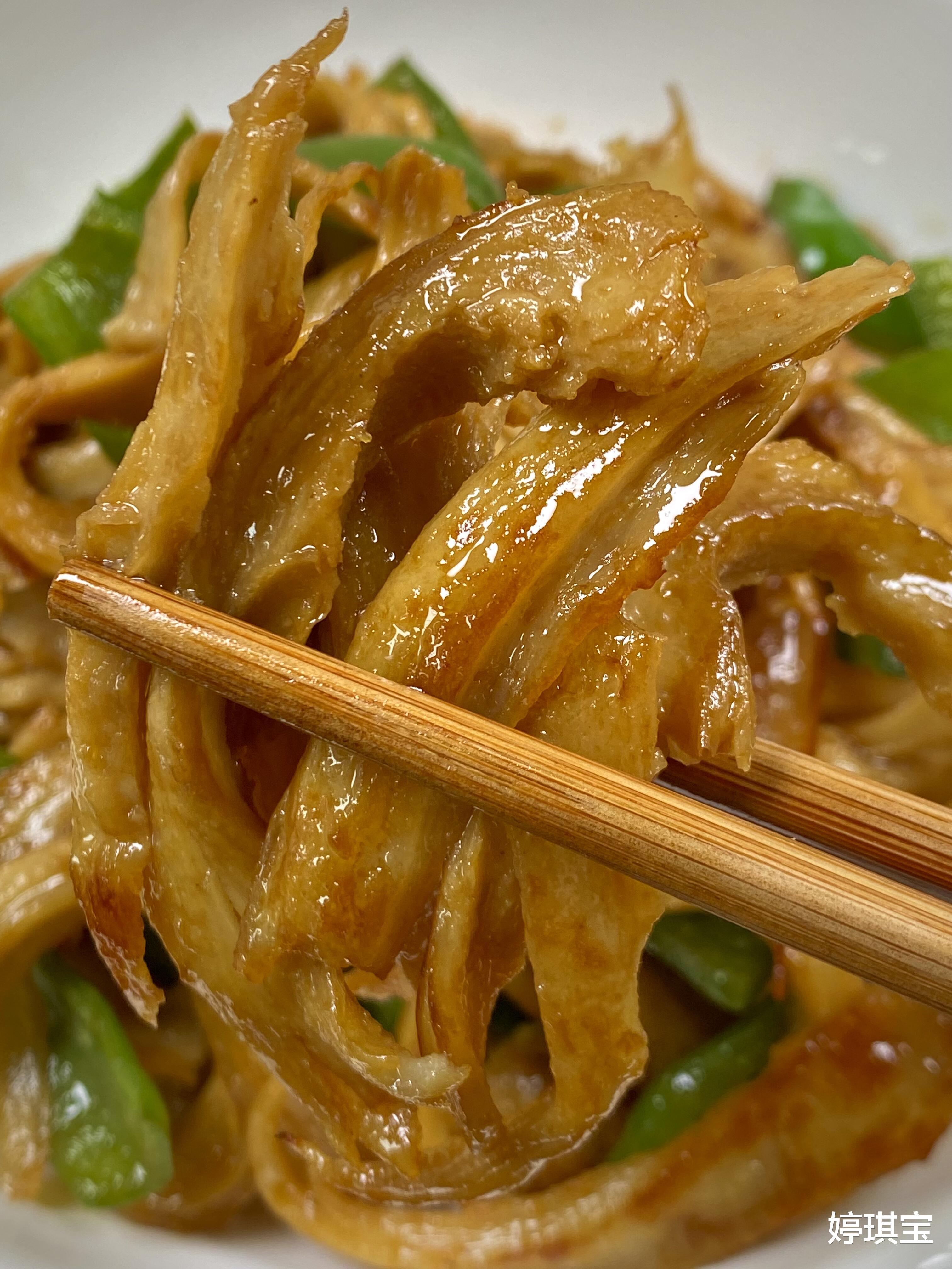 "面筋要弹,青椒要脆,火候要猛!"大叔一边颠锅一边吆喝,"这两样凑一块儿,就是素菜里的黄金搭档!"那是我第一次发现,原来朴素的面筋和青椒能碰撞出如此惊艳的火花——面筋的Q弹,青椒的脆嫩,在酱汁的包裹下奏出一曲咸香爽口的味觉交响。* 水面筋 300克(选有弹性的)* 青椒 2个(薄皮更脆)* 生抽 1大勺* 老抽 半勺(上色用)* 淀粉 1小勺* 蚝油 1大勺* 糖 半小勺(提鲜关键!)* 醋 几滴(解腻点睛)* 蒜末 1大勺* 干辣椒 3个(可选)* 花椒 1小勺面筋撕成小条(别用刀切!),加生抽、老抽、淀粉抓匀腌10分钟。这样面筋更入味且炒时不粘锅~青椒去籽切丝,蒜切末,干辣椒剪段。看!青椒碧绿如玉,还没下锅就赏心悦目!热锅少油,下面筋中火翻炒至微焦盛出。这样炒出的面筋外微焦里Q弹~用余油爆香花椒、干辣椒和蒜末,闻到香气时下青椒丝大火翻炒至断生。放回面筋,加蚝油、糖快速翻炒,临出锅淋醋。瞧!面筋酱色诱人,青椒翠绿欲滴,香气扑鼻而来!1. 选材秘诀:面筋选新鲜的更弹;青椒选薄皮的更脆;干辣椒选二荆条最香2. 处理技巧:手撕面筋更易入味;青椒去白膜减少辣味;蒜末要现剁现用3. 火候关键:炒面筋要中火出香;炒青椒要大火保脆;混合后要快速出锅4. 调味平衡:糖能中和咸度;醋要最后淋入;蚝油已鲜,不加味精5. 变化升级:加豆干更丰富;用红椒增色彩;喜欢麻味可加花椒油记得第一次做这道菜时,我把面筋炒成了橡皮筋,青椒煮成了黄脸婆。室友却吃得津津有味,还说:"这嚼劲,锻炼牙口!"后来才知道,她偷偷浇了好多辣椒油。如今这道菜已成为我的拿手素菜,每次做都会想起那个被辣得满脸通红的夜晚。这道菜最妙之处在于,既简单快手又美味可口。面筋的弹牙,青椒的脆嫩,酱汁的咸香,让人一口接一口停不下来。更重要的是,它成本低廉,十分钟就能上桌,是忙碌生活中的味觉救星。今晚不妨炒个青椒面筋吧!让它那咸香爽脆的滋味,唤醒你的味蕾,温暖你的时光。记得要多焖点米饭,因为这菜实在是——太下饭啦!