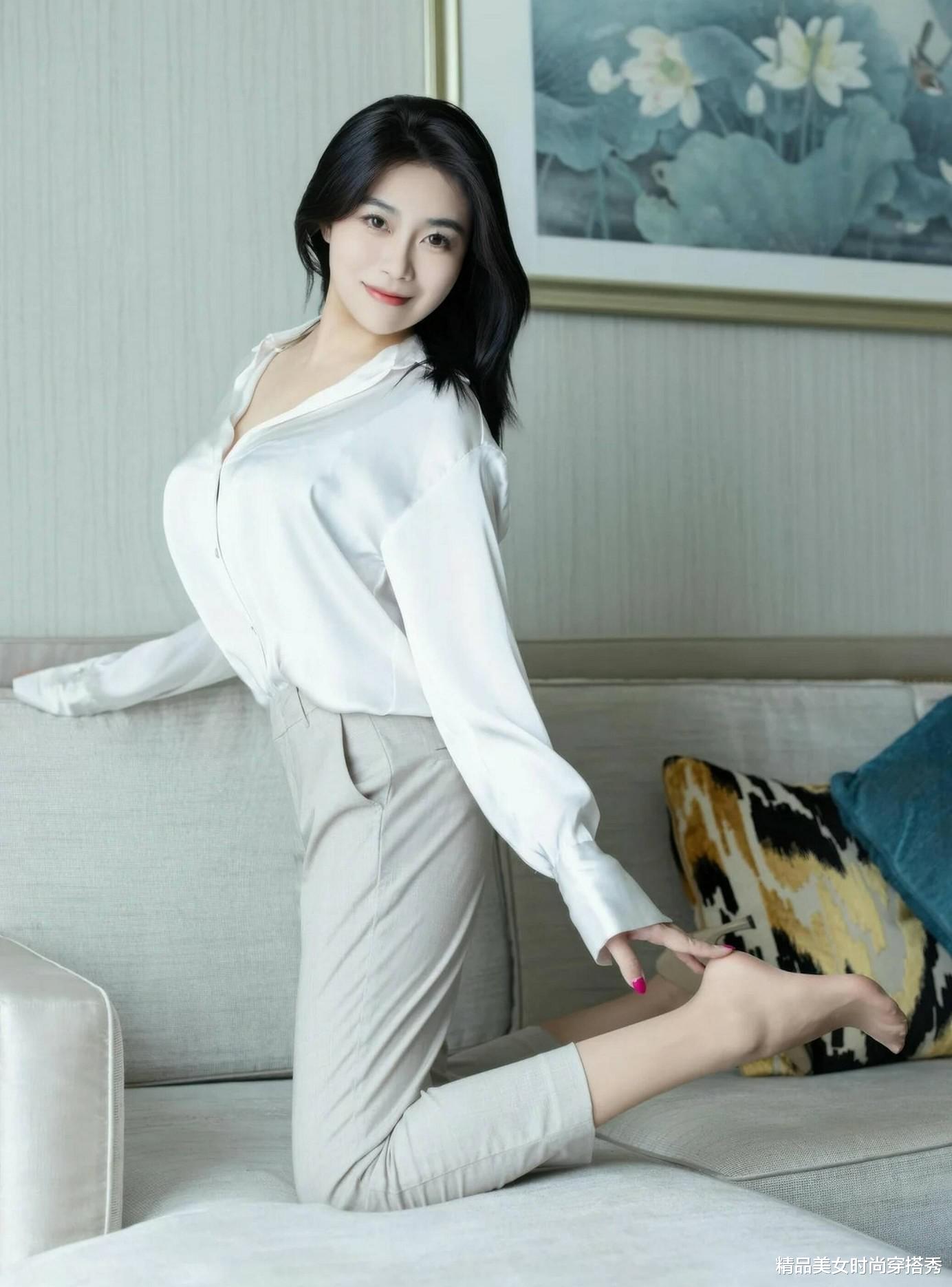 职场也能成秀场!👀 一袭简约白衬衫,搭配浅灰色修身裤,知性中透露出无限时尚感~💼