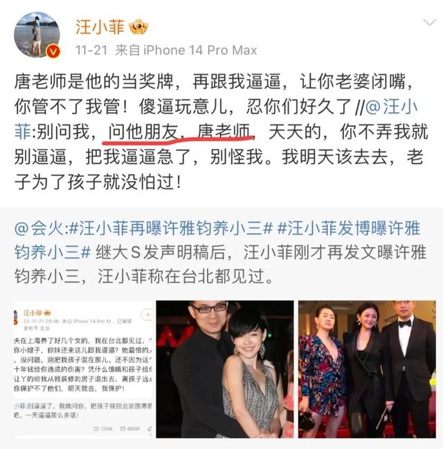 在汪小菲和大S的隔空骂战中,汪小菲爆料称:许雅钧在上海还不止养一个女人,从现在看来并非空穴来风。
