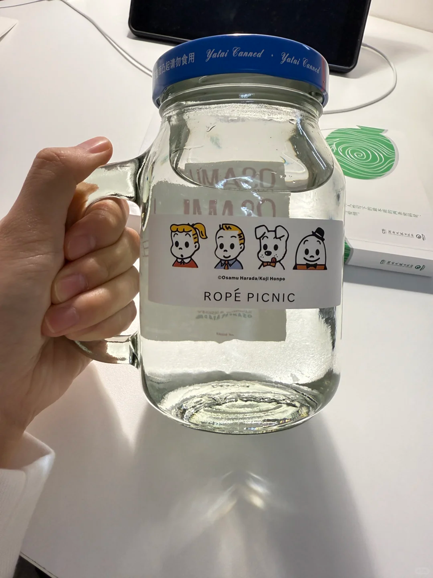 如果大家买到的是这种带有把手的罐头瓶,那么吃完罐头之后不要白白的丢掉,可以将其清洗干净,直接当做水杯来使用。
