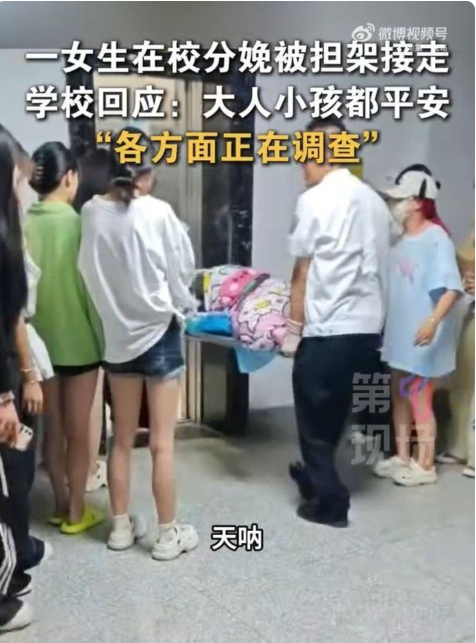 后来学校回应,女孩已被送往医院,母子平安,女孩家属也已经赶到学校。