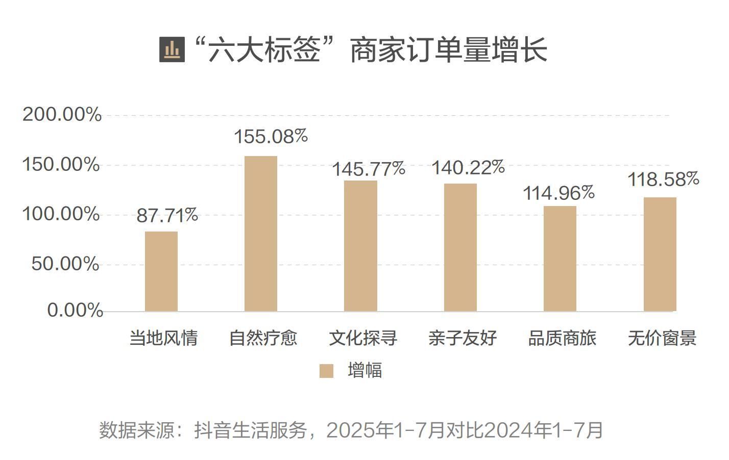 特色生活方式酒店都在玩抖音。2025年上半年,越来越多的特色生活方式酒店入驻抖音生活服务,实现“入驻即增长”。从订单量来看,2025年六大标签酒店全面超越2024年,且大部分标签酒店订单量实现翻倍增长。