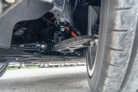底盘方面,前麦弗逊、后多连杆独立悬挂,能根据路况自适应调节悬架软硬。过减速带、坑洼路面时,颠簸感过滤得很彻底,不会有生硬的冲击感,乘坐舒适性很好。我家孩子有时候坐车会睡着,就算经过不太好的路面,也不会被颠醒。